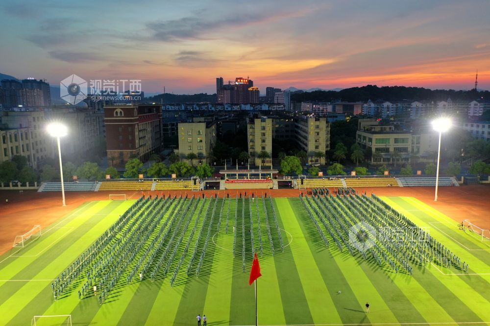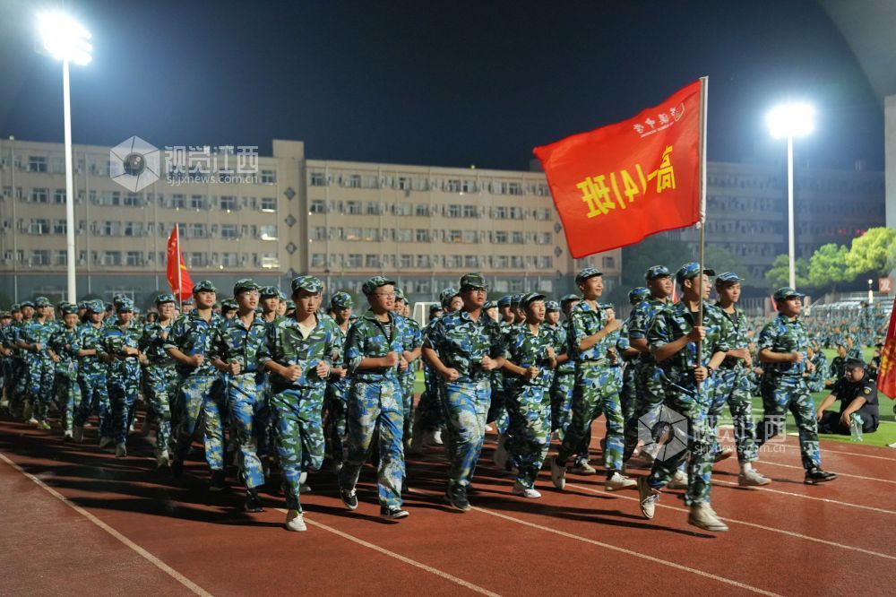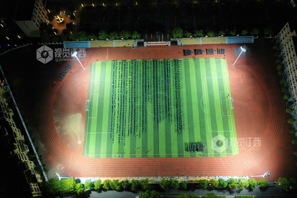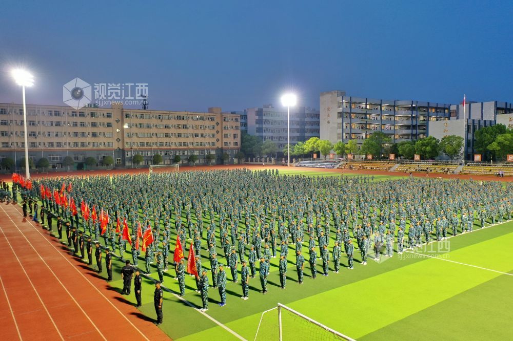 2022年8月28日晚,江西省萍乡市芦溪中学、芦溪县周敦颐实验学校新生在操场上军训队列展示,迎接新学期的到来。此次高一新生军训8月24日开始,28日结束,学生通过军训锻炼身体素质,磨砺意志品质,展现青春活力,以崭新的面貌迎接新学期。