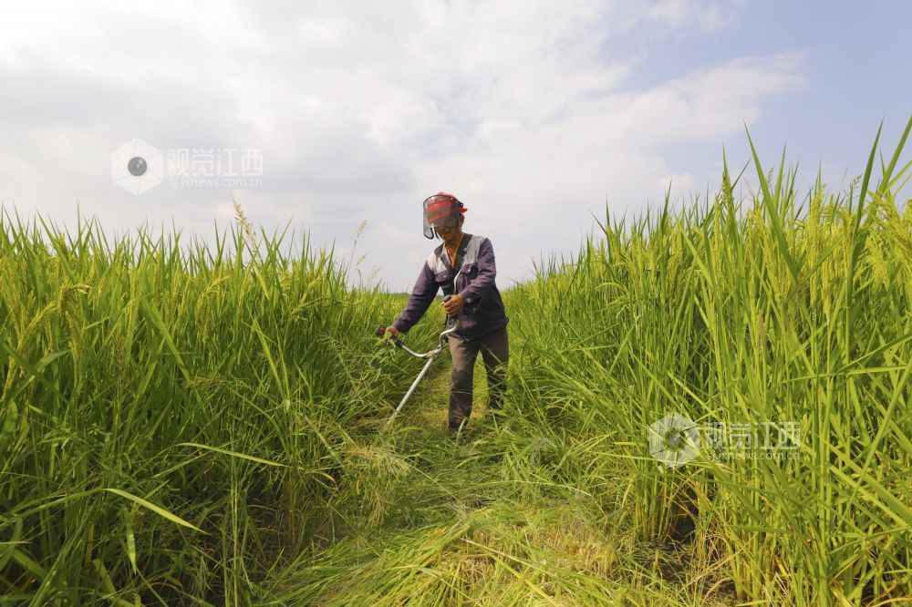9月2日,江西湖口县万亩油料基地武山镇武前村千亩核心种植区,种粮大户在清除田间杂草。
