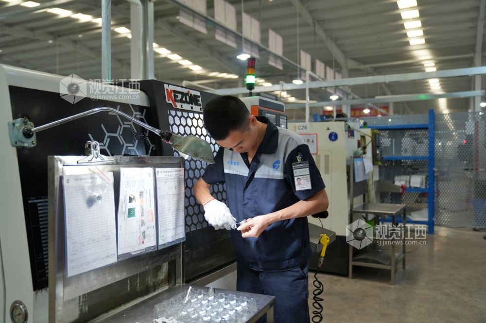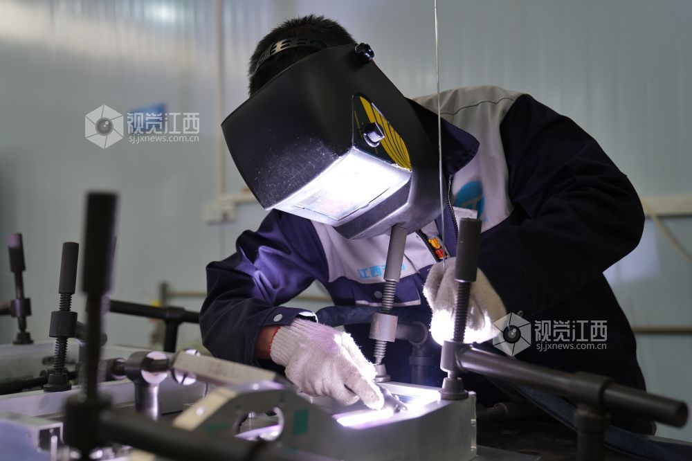 2022年9月2日,位于江西省萍乡市芦溪县工业园的江西天铭新能源汽车零部件有限公司车间,企业员工正在赶制铝合金汽车底盘。