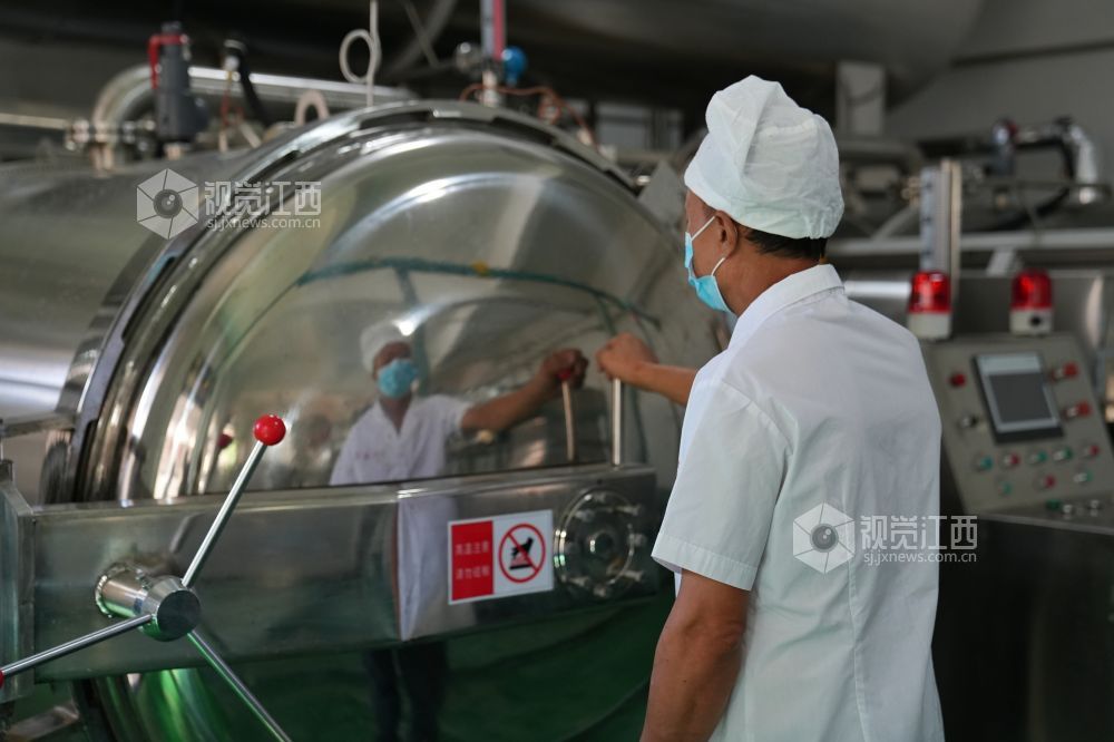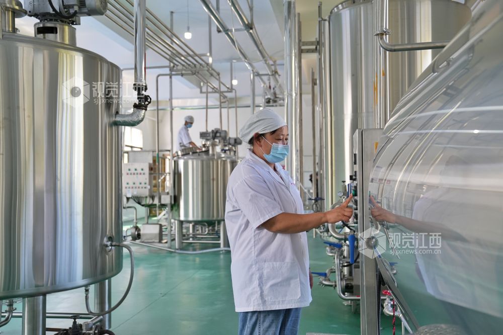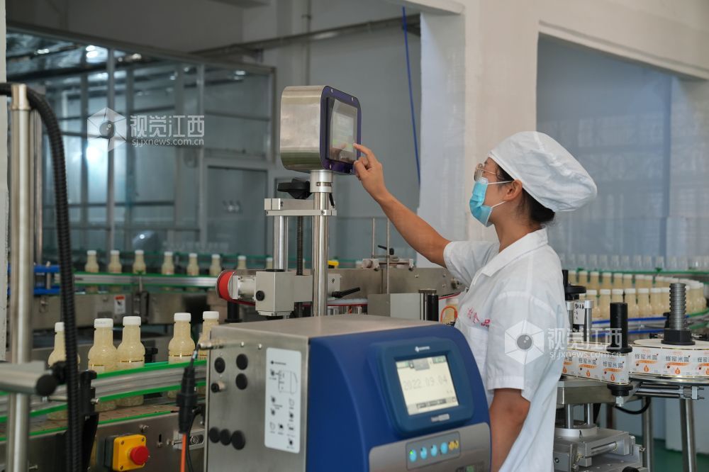 2022年9月4日,江西萍乡市芦溪县张佳坊乡,工人在芦溪县一村食品有限责任公司紫红米露生产线忙碌。近年来,江西省萍乡市芦溪县坚持以党建为引领,积极引进一批高效示范性农业项目,通过运用互联网、物联网、全自动化等新技术发展现代农业,推进农业产业结构调整与升级,促进农业生产销售向智能化、精准化、产业化方向转变,带动农民增收,助力乡村振兴。