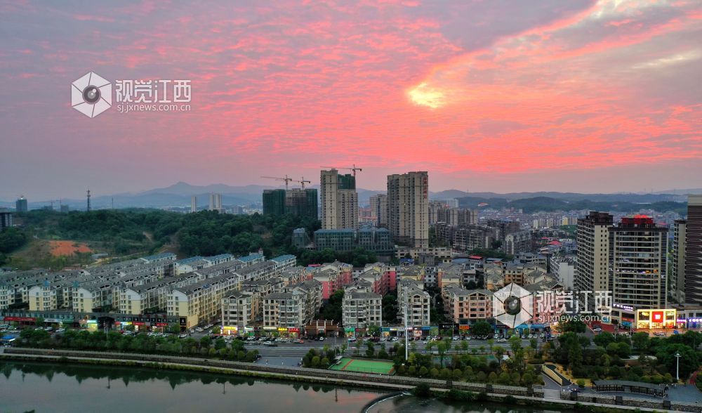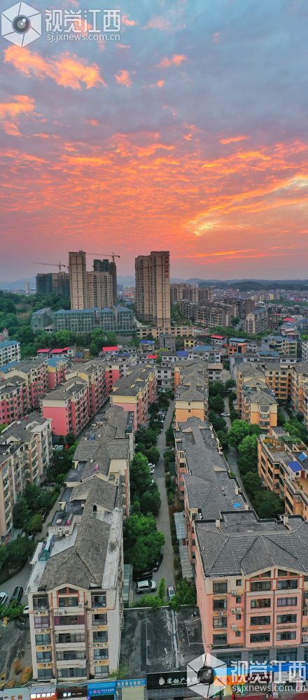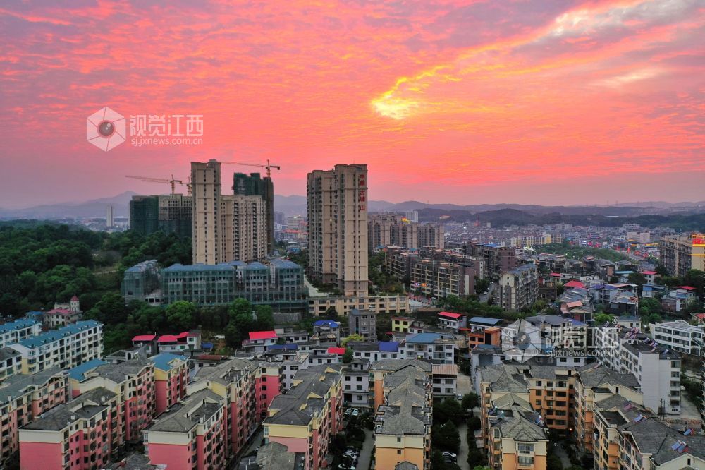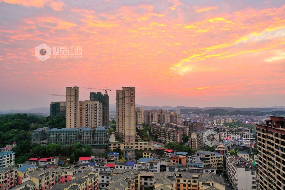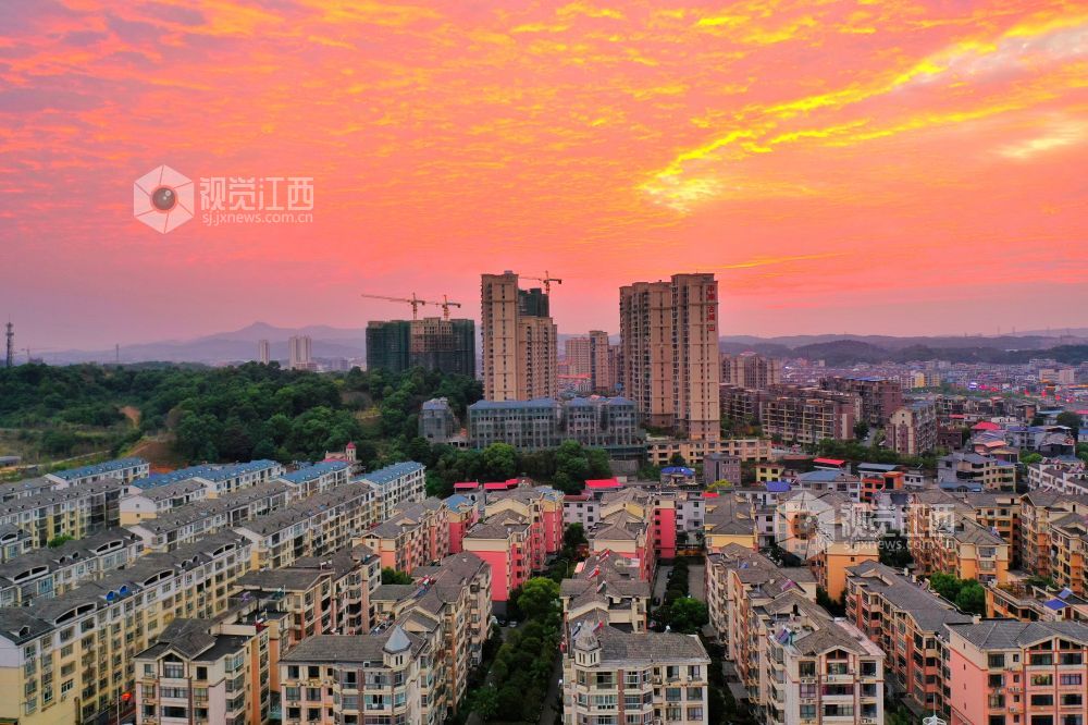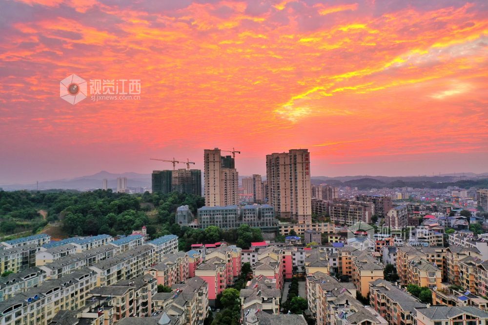 2022年9月4日傍晚,江西省萍乡市芦溪县上空出现“火烧云”景观,绚丽多彩、变幻莫测的霞光在天际边渲染开来,美不胜收。