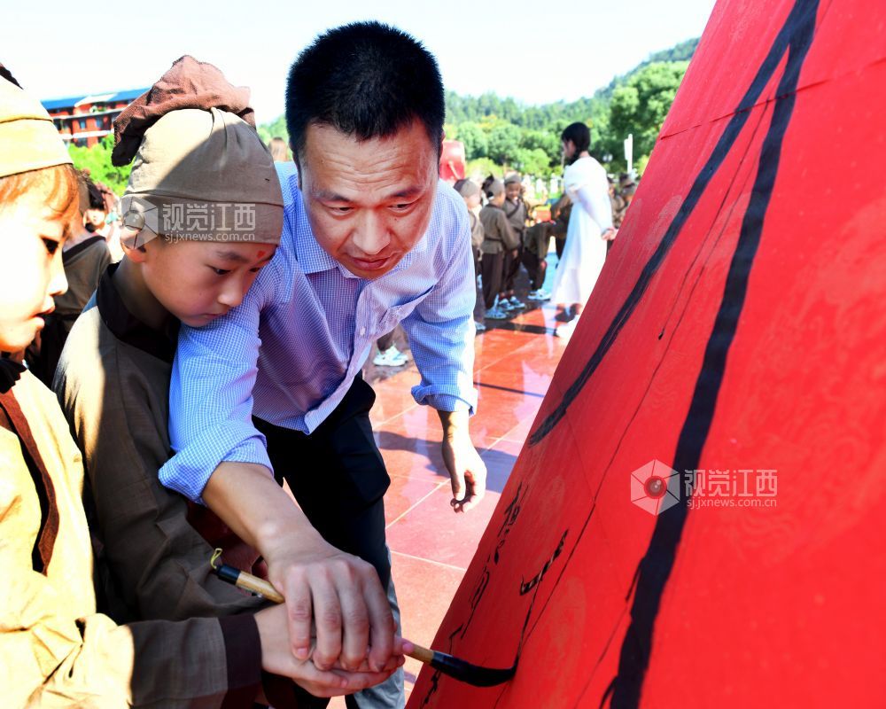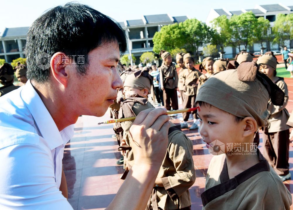 当天上午,江西省德兴市新岗山中心小学为一年新生举行了一次蒙童开笔仪式,为新学期开学典礼添彩增色。