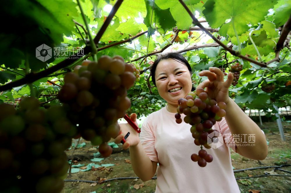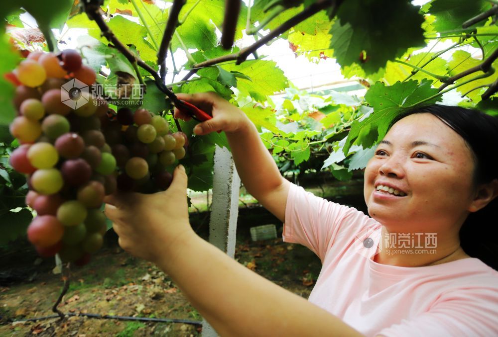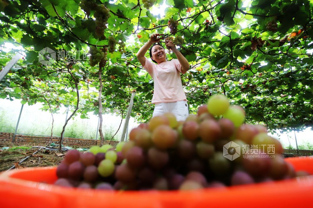 2022年9月7日,江西省吉安市安福县平都镇张家山村村民李淑云在采摘葡萄。