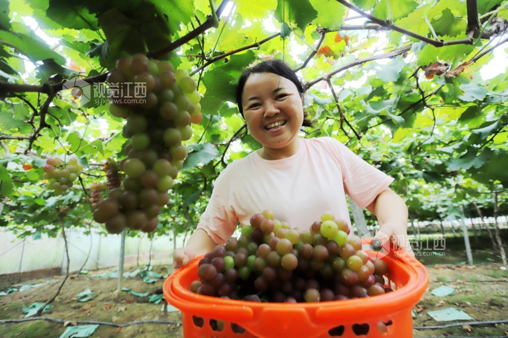 张家山村田园综合体采取“合作社+基地+农户”的形式经营,栽种葡萄、蜜柚、蓝莓、猕猴桃等果树200余亩。目前,该田园综合体的有机葡萄相继成熟,社员们忙着采摘,供应市场。