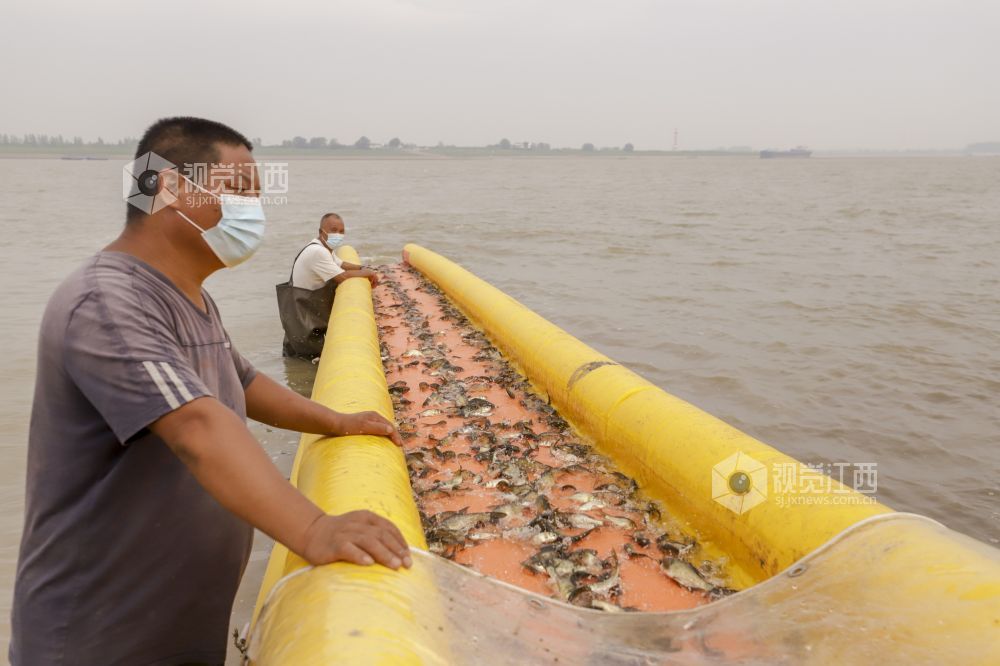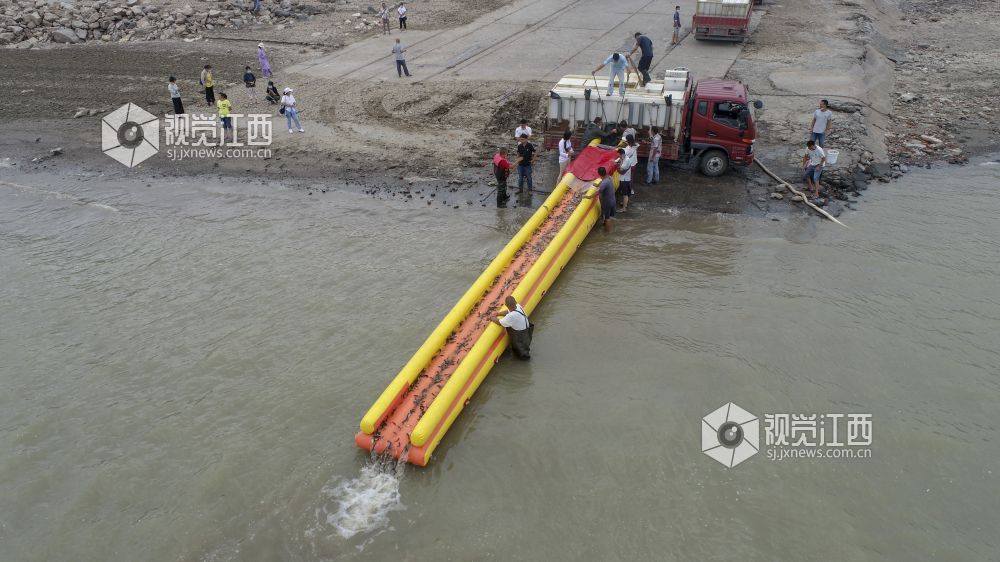 9月8日,环保公益志愿者团队在江西鄱阳湖湖口县西门渡口水域增殖放流花鲢秋片100万尾。