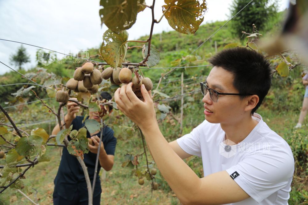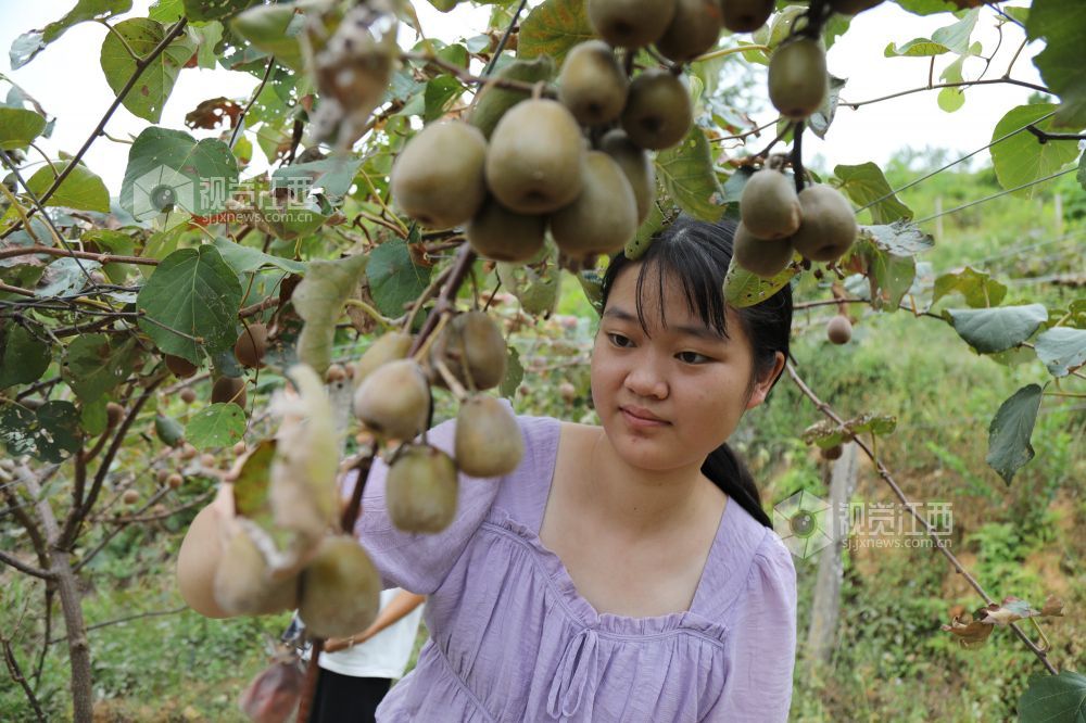 9月8日,江西省莲花县闪石乡太源村碧塘猕猴桃种植基地,一串串猕猴桃挂满枝头,一派丰收的景象,游客穿梭期间,忙着采摘。
