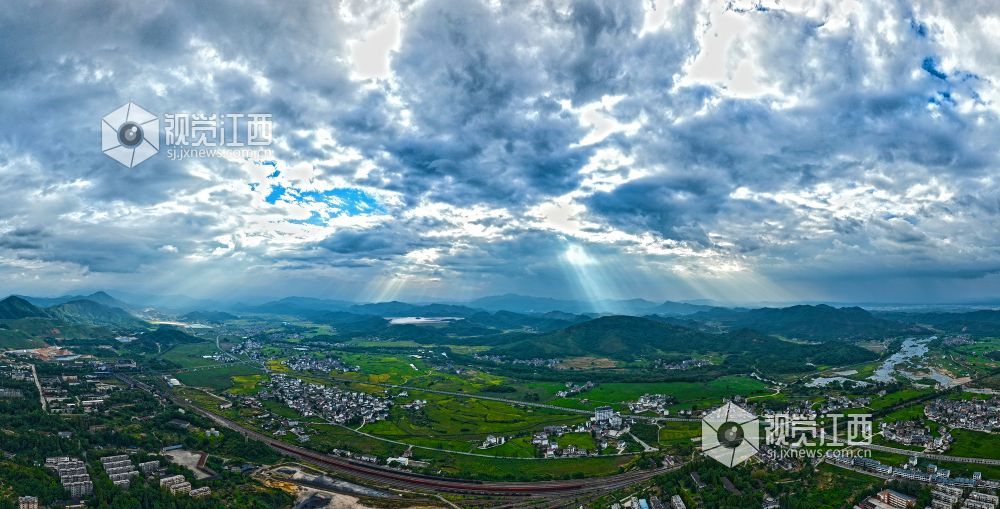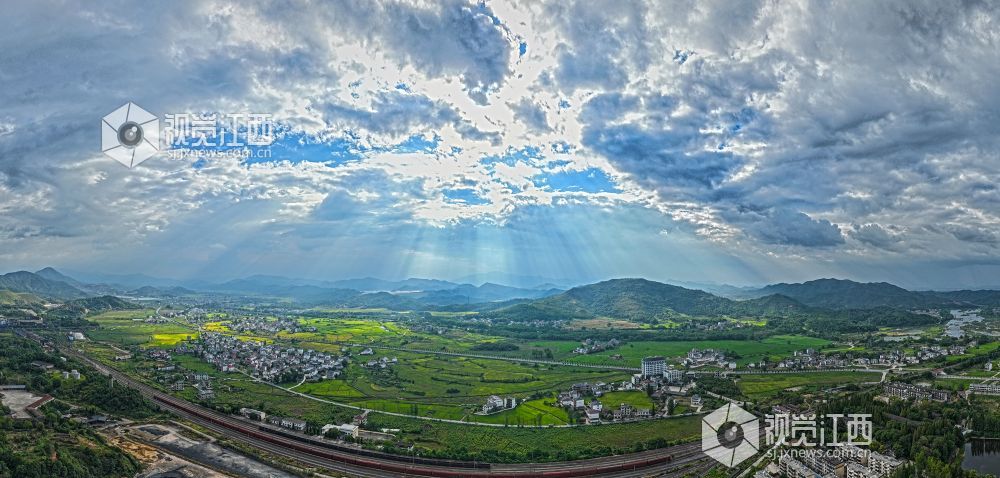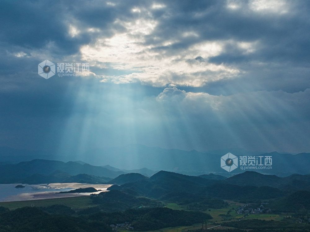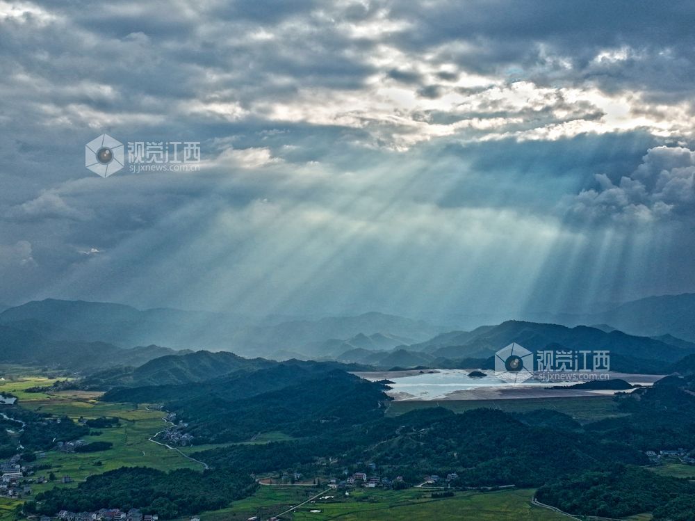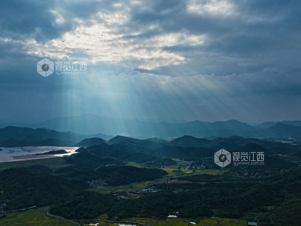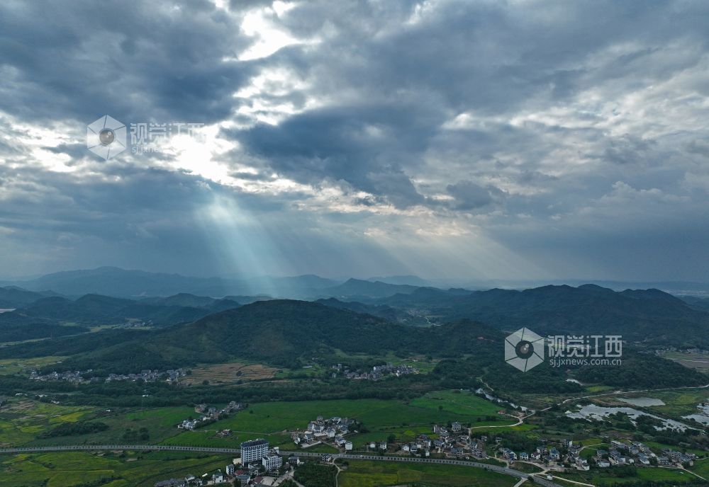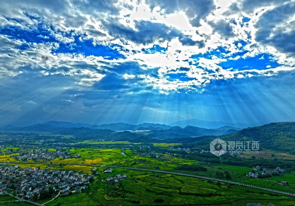 2022年9月14日,江西省上饶市铅山县上空出现“丁达尔效应”,一缕缕阳光从云间洒向大地,呈现出“光的形状”。阳光透过浓厚的云层,一道道“光瀑”从高空倾泻而下,伴随着云朵的飘动,光束犹如脱缰的野马,在金秋的稻田里奔跑,十分壮观。