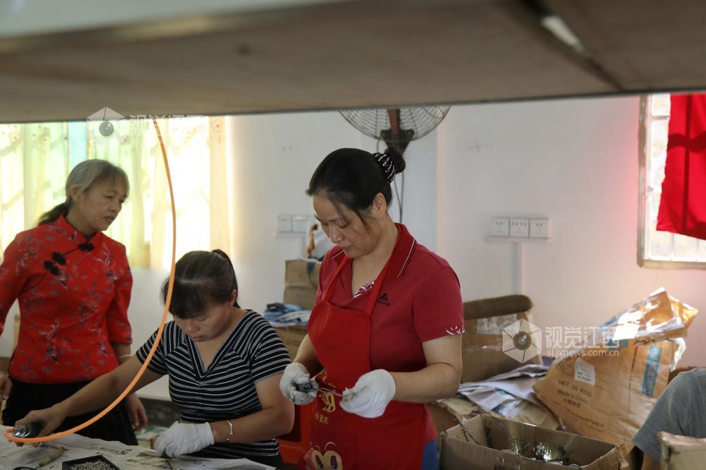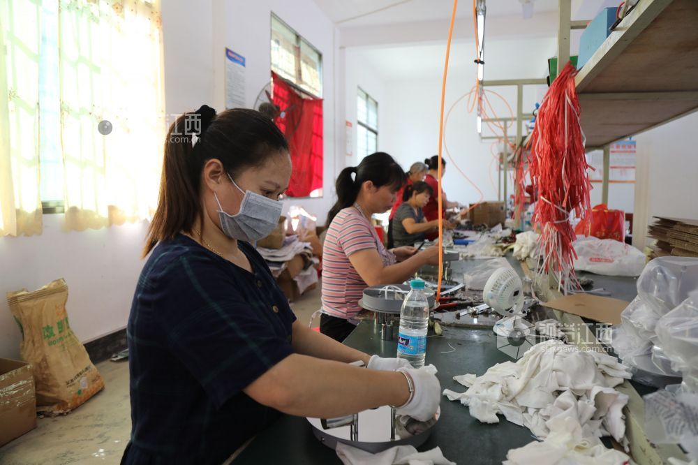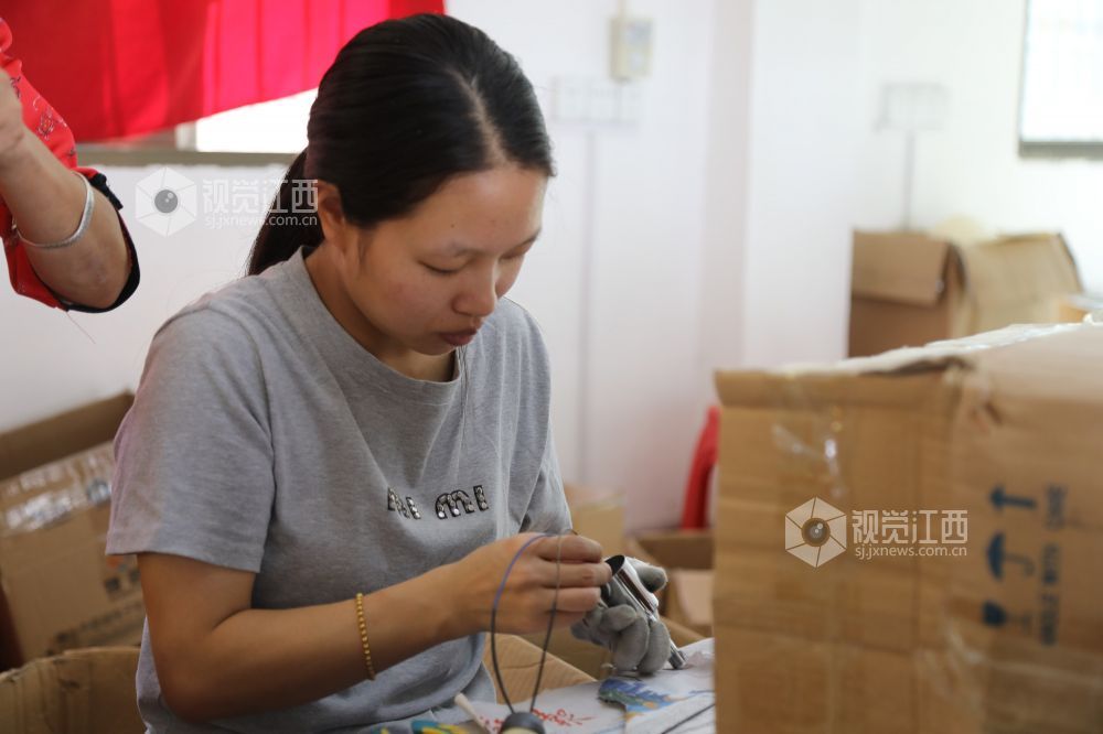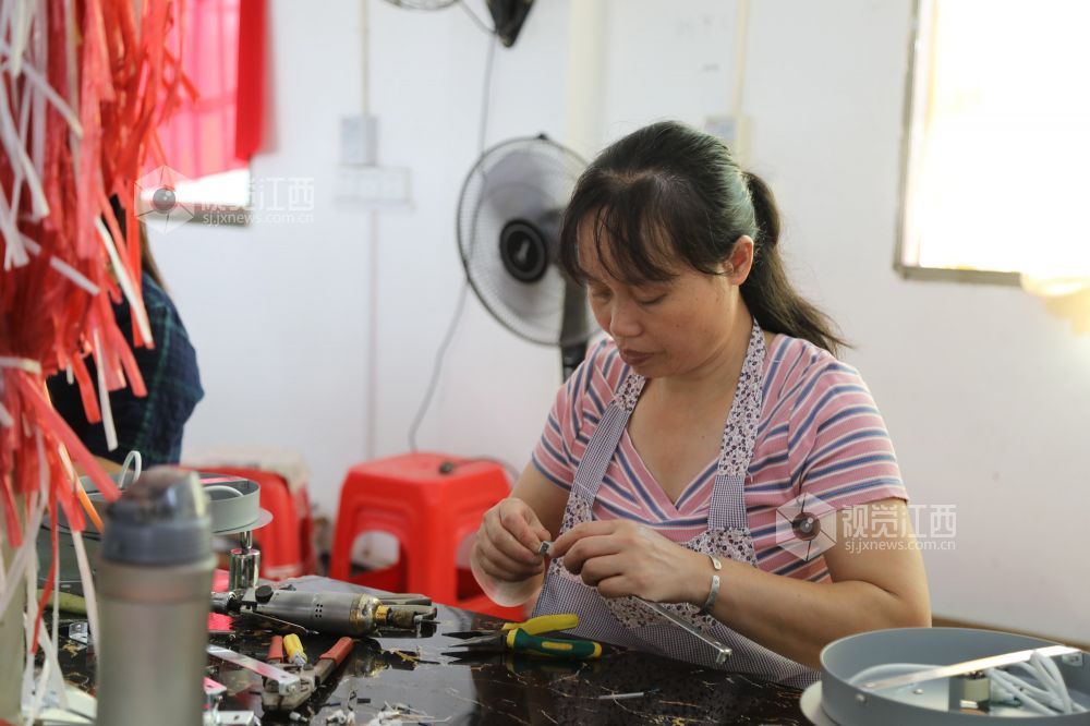 9月16日,江西省莲花县南岭乡塘边村就业帮扶车间,村民正在组装LED吸顶灯,包装后运往广东佛山,然后销往德国。