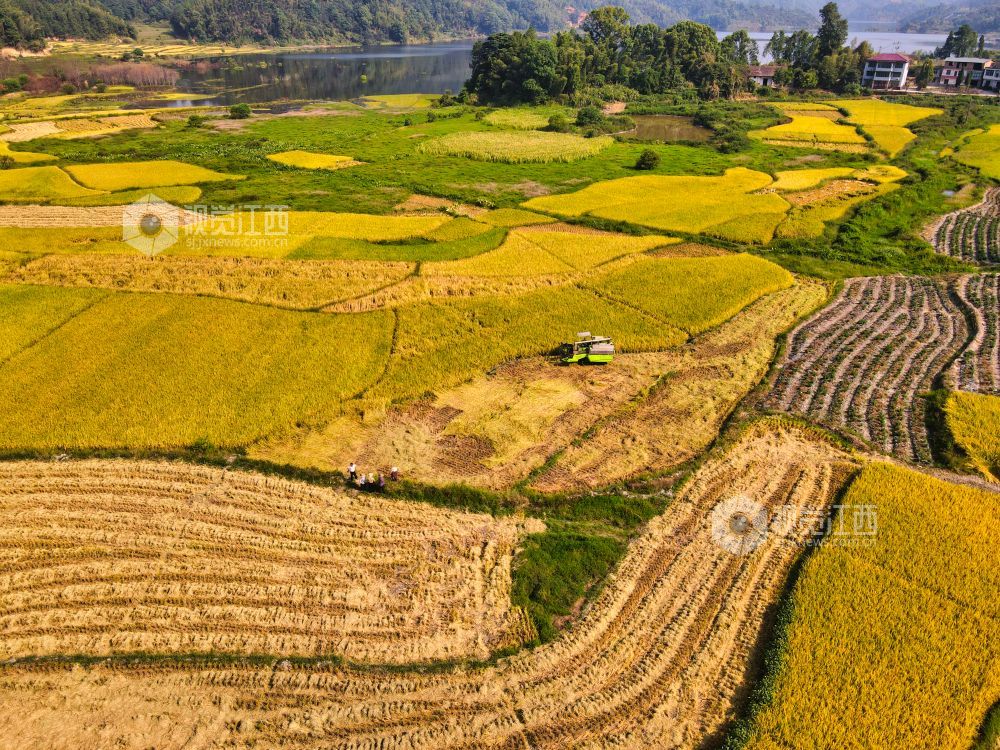连日来,江西省宜春市袁州区水稻已陆续开镰收割。