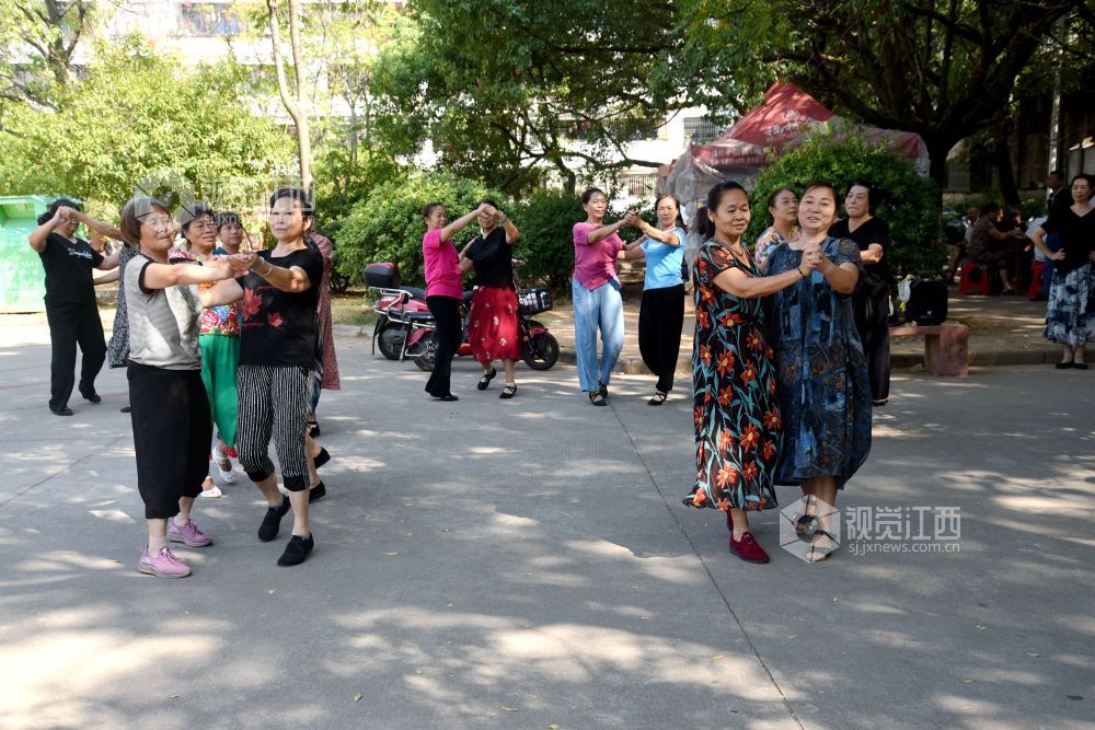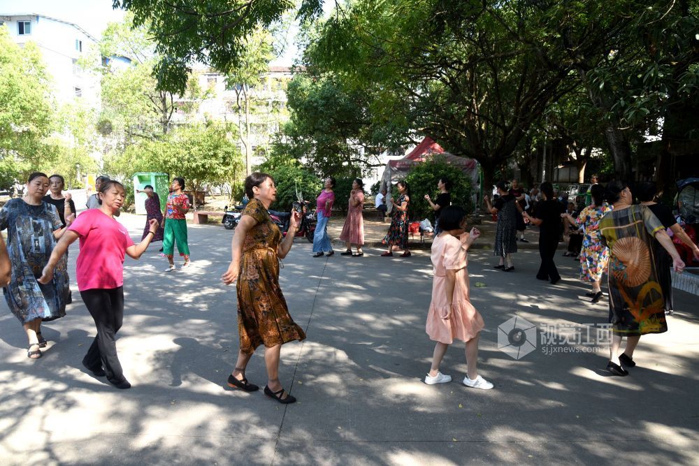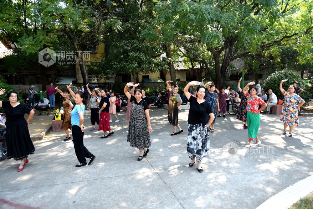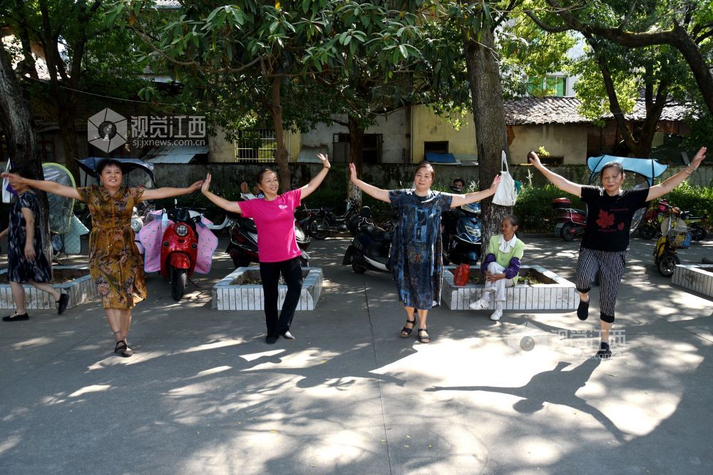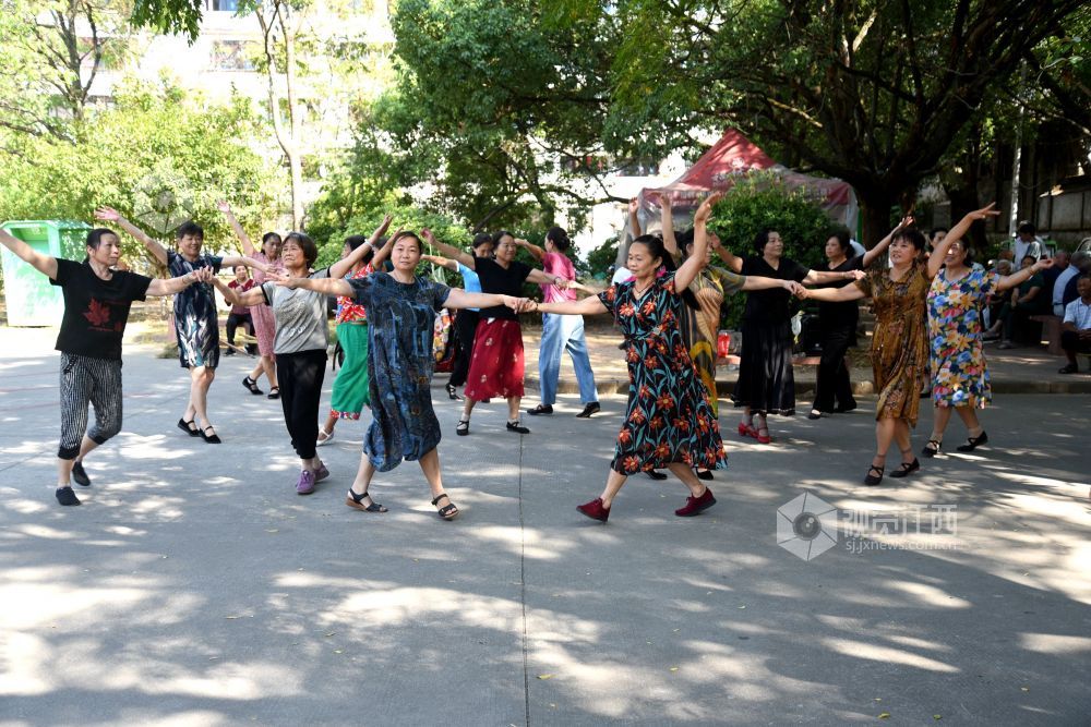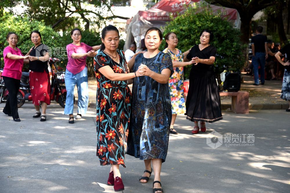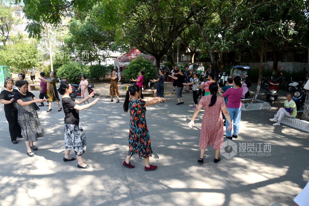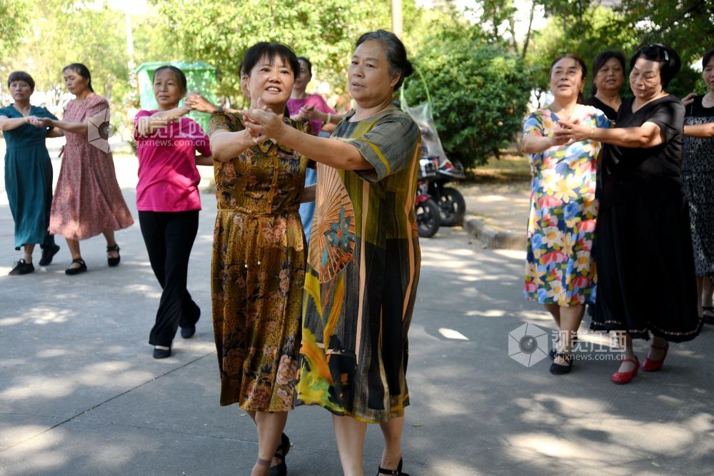 2022年9月18日,江西省抚州市南丰县老年人体育协会飞翔舞蹈队的20多个大妈在人民会场练习广场舞、拉手舞等健身运动项目,运动给她们带来健康,更带来幸福和快乐。