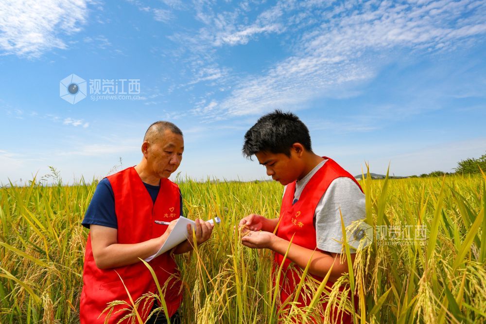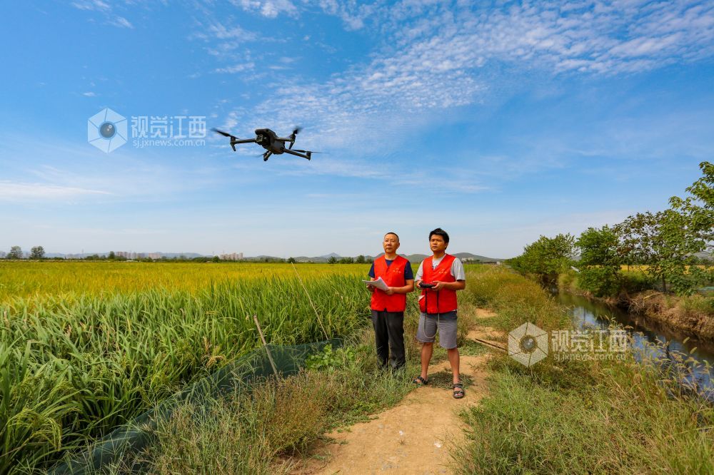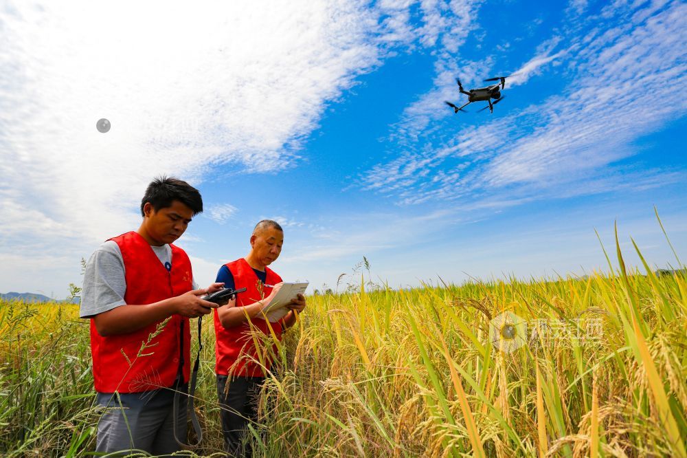 2022年9月20日,江西省瑞昌市气象局农业气象技术人员正在该市赛湖农场三分场水稻田进行水稻旱情调查。
