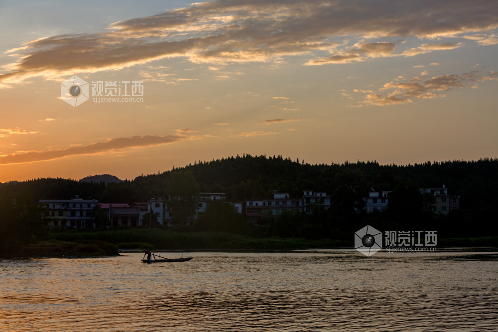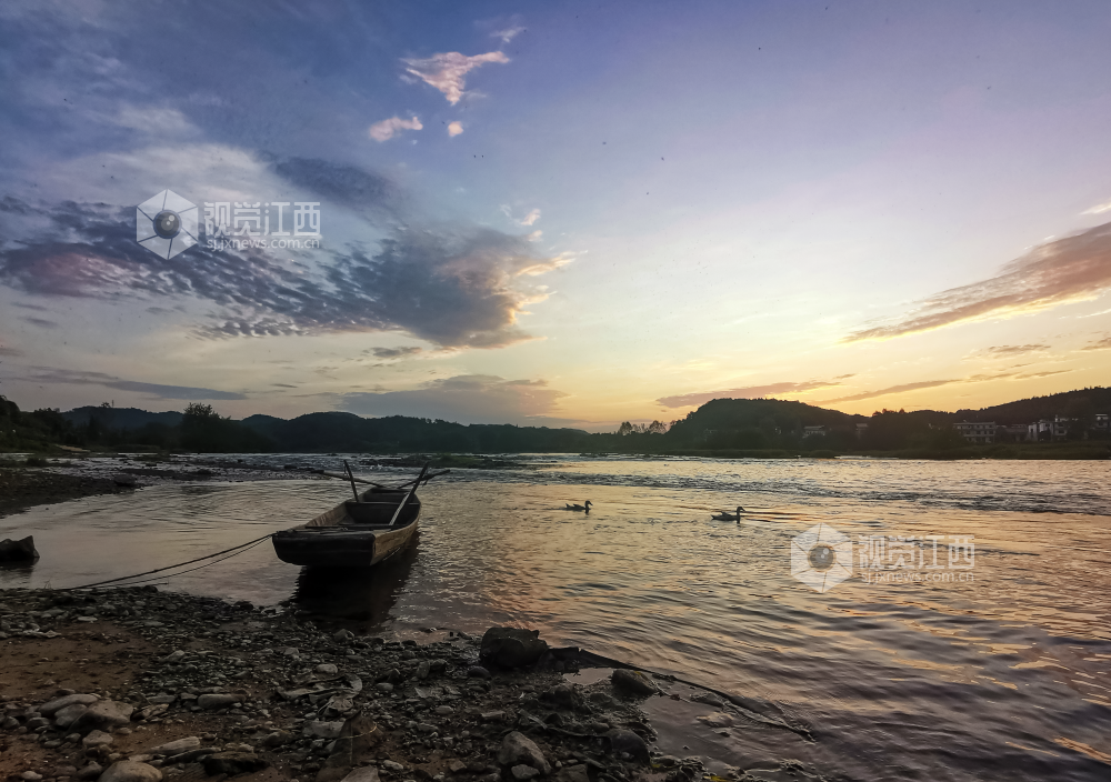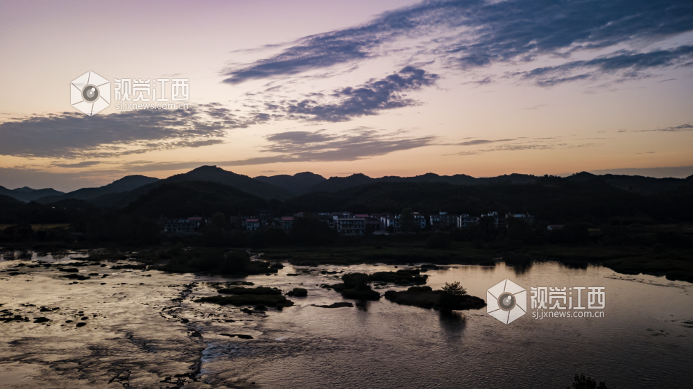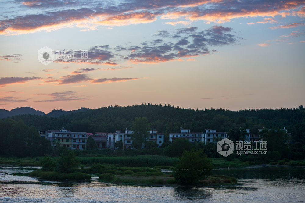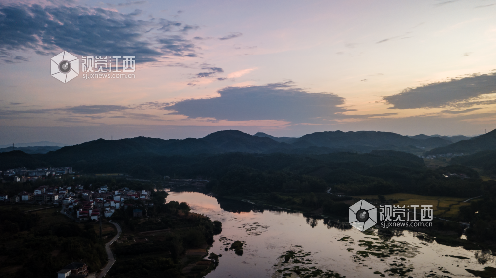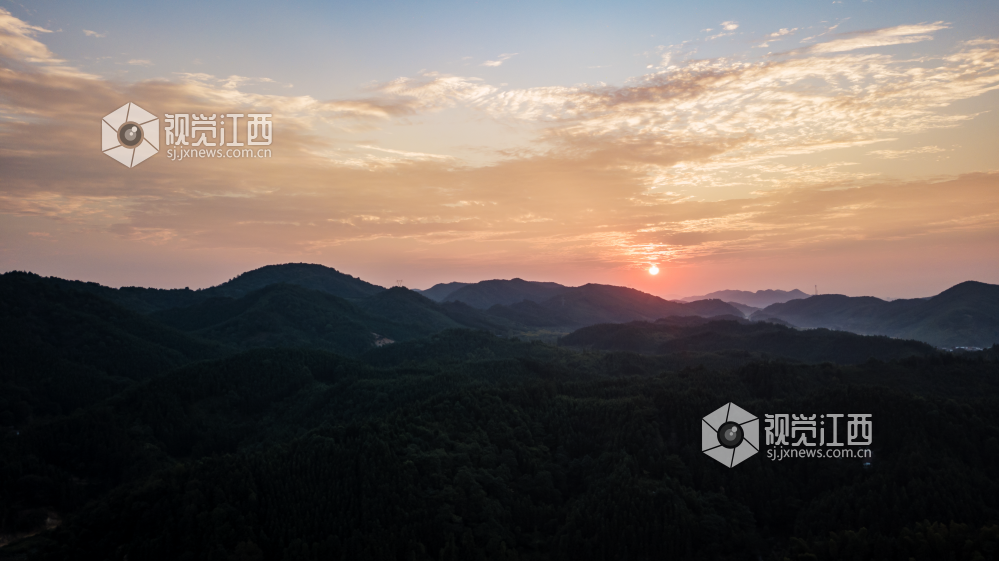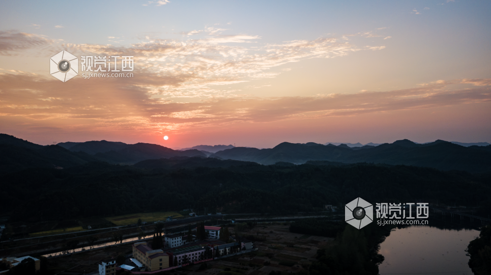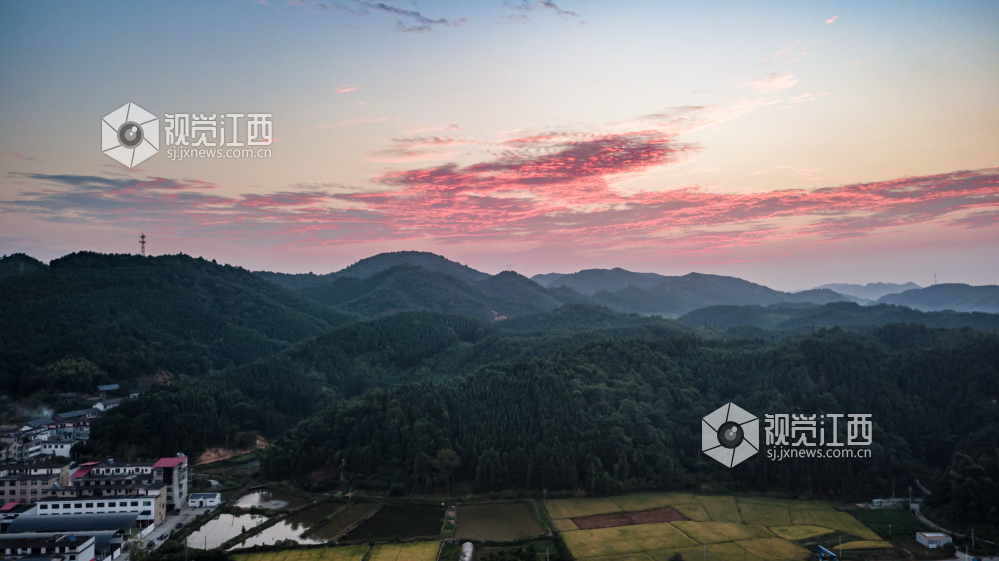 2022年9月21日,江西省分宜县洋江镇上空呈现朝霞景观,万丈霞光绚丽多彩。