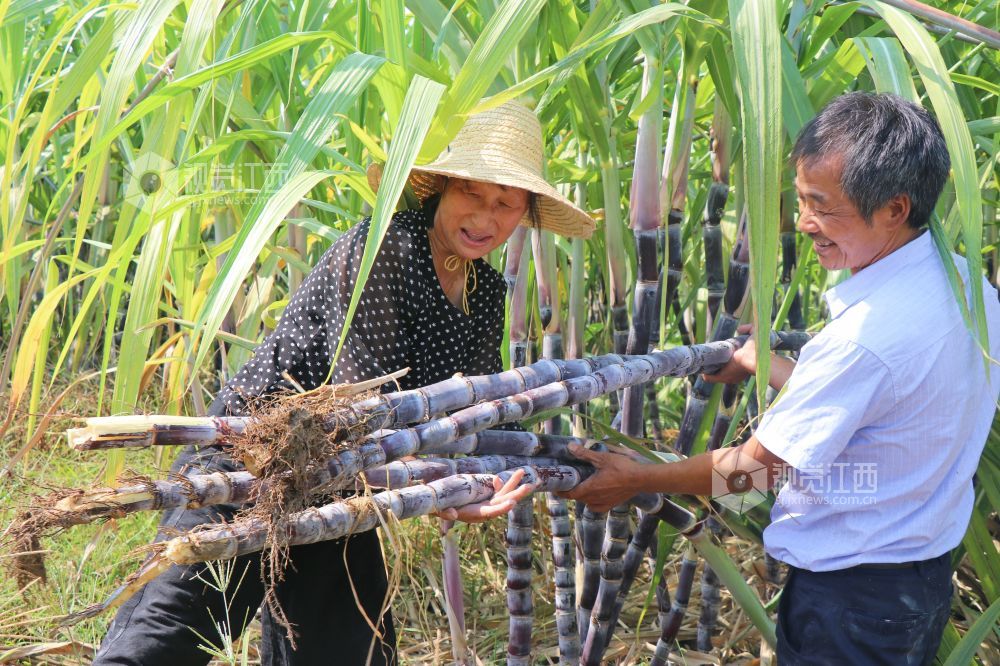 9月27日,在江西省余干县鹭鸶港乡方家洲村甘蔗种植园里,蔗农正忙着采收甘蔗。
