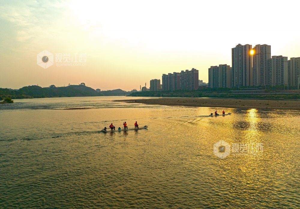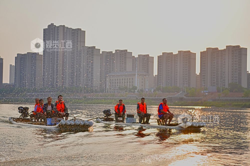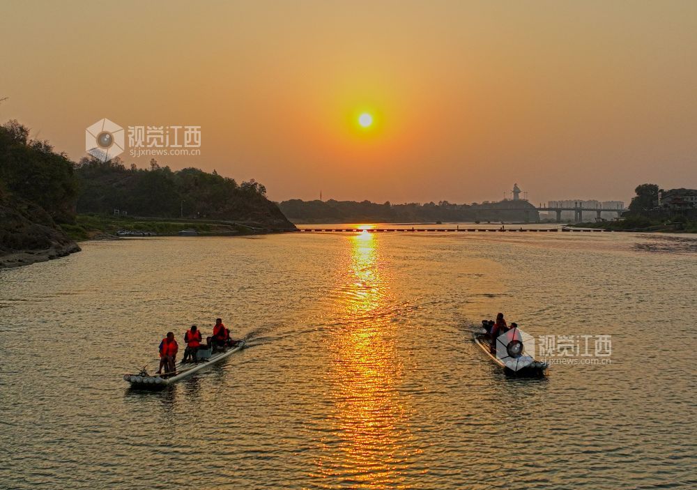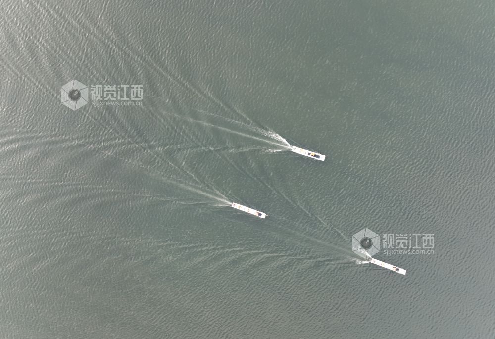 2022年9月24日,在江西省上饶市信江河铅山段,护鱼员正在河面上巡护。为全面贯彻落实“十年禁渔”指示批示精神,围绕健全退捕渔民安置保障机制、重点水域禁捕秩序监管机制、水生生物多样性?;せ频热罨?,铅山县细化工作措施,出台《铅山县重点水域退捕渔民养老保障实施意见》和《铅山县重点水域退捕渔民转产就业实施意见》 为退捕渔民提供参保缴费补贴,同时,对符合条件的渔民实现“离河不离水”,从捕鱼人转身为护鱼员。