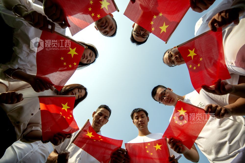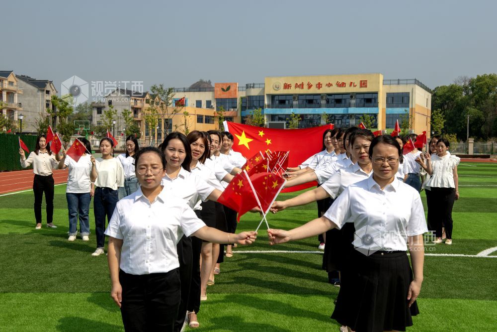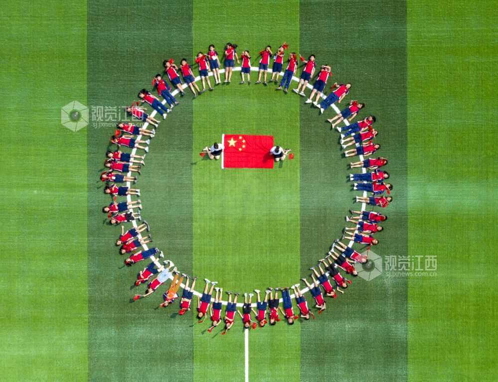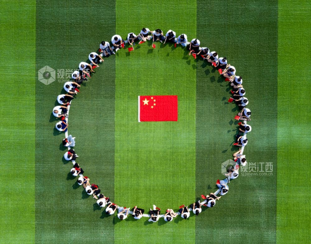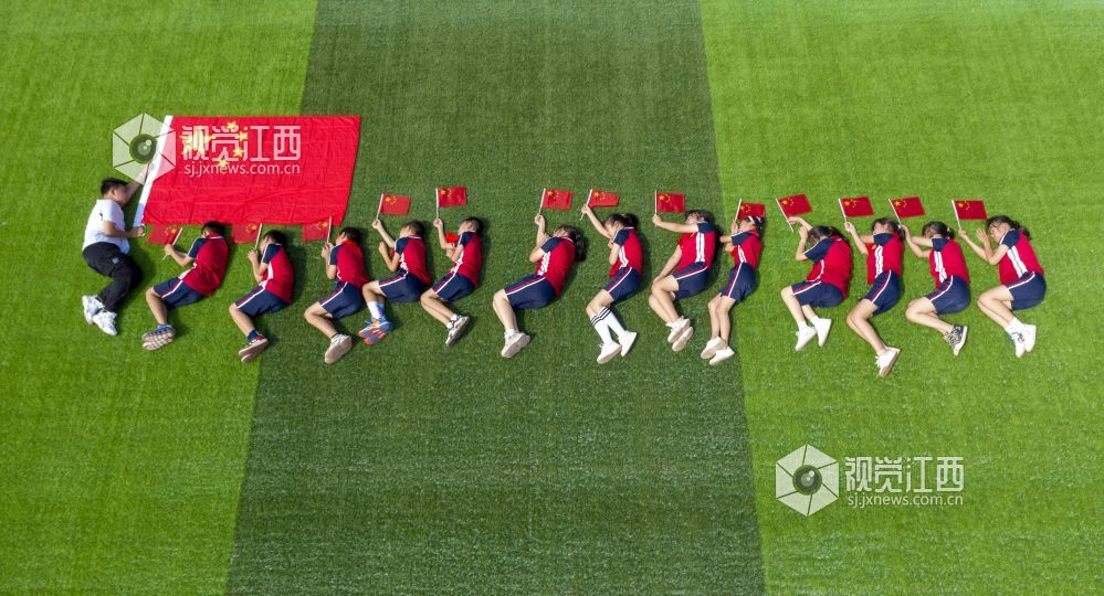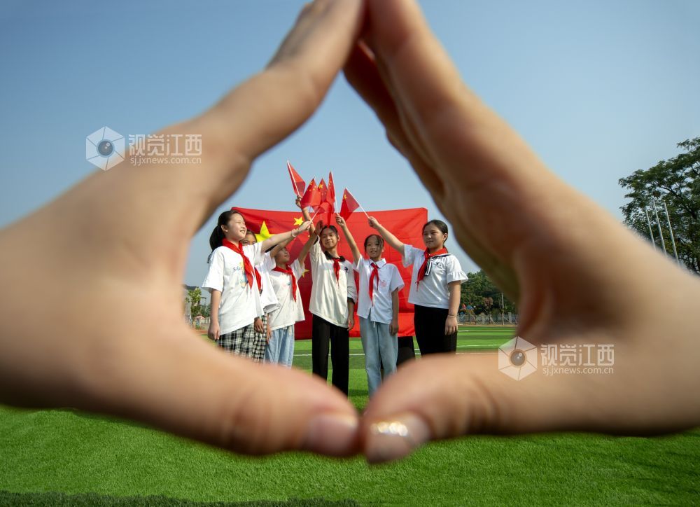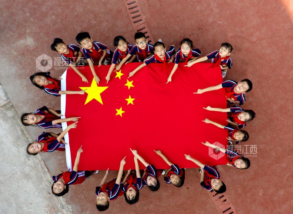2022年9月29日,江西省上饶市铅山县新滩乡中心小学举办“我和国旗合个影”活动,师生一起和国旗合影。200余名学生与50余教师手持国旗,或摆成象征圆满的“同心圆”、或象征“紧跟国旗走”的一字队、或象征“真心献给国”的爱心,拍下了与五星红旗最美的合影。师生们用自己的方式,最甜的笑容、最真的情感,争相与国旗同框,表达对祖国的热爱与祝福。