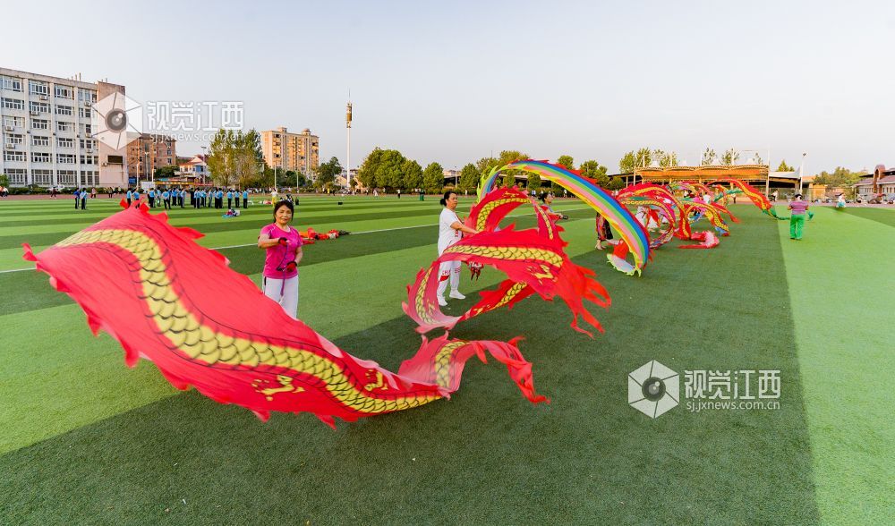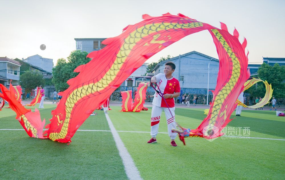 2022年10月1日清晨,江西省金溪县体育广场上,不少市民穿戴整洁、手持国旗。伴随着欢快的节奏和优美的歌声,他们纵情地舞着彩龙、跳着热舞,并与国旗合影留念,以表达对祖国深深的祝福。近十年来,随着该县经济社会的发展,随着全民健身运动的推进和爱国主义教育的拓展,市民学习、健身、休闲、娱乐有了更多更好的场所,幸福感和爱国情怀也得以进一步提升。