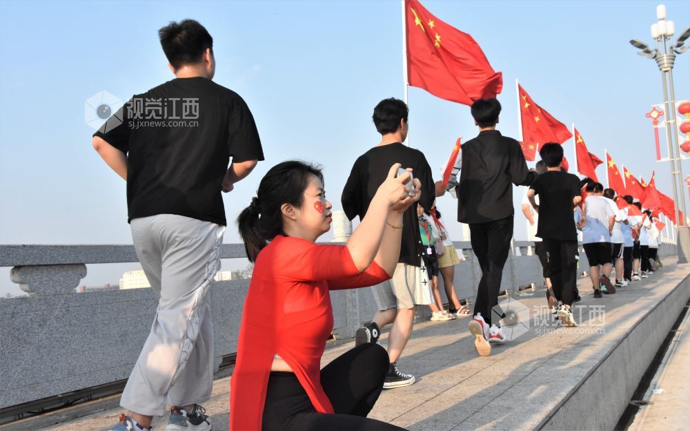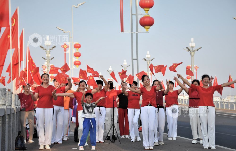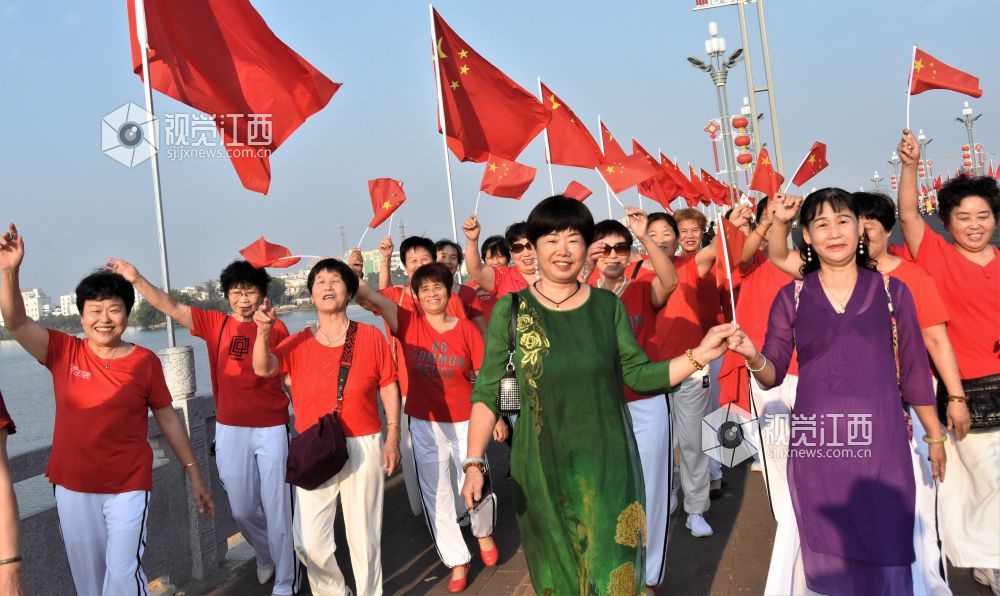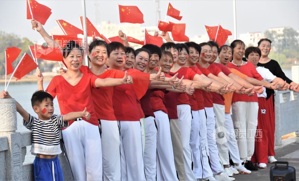 2022年10月2日,国庆节的江西省鄱阳县城市民以各种形式欢庆国庆,表达对伟大祖国的热爱,幸福的笑容映在张张笑脸上。