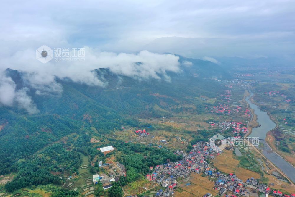 江西泰和:云雾缭绕乡村美如画
