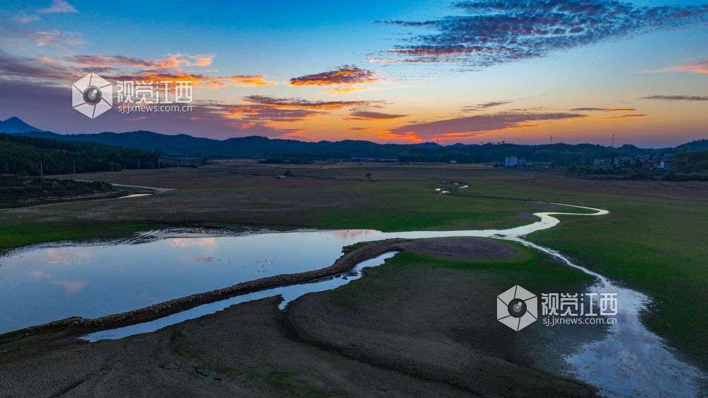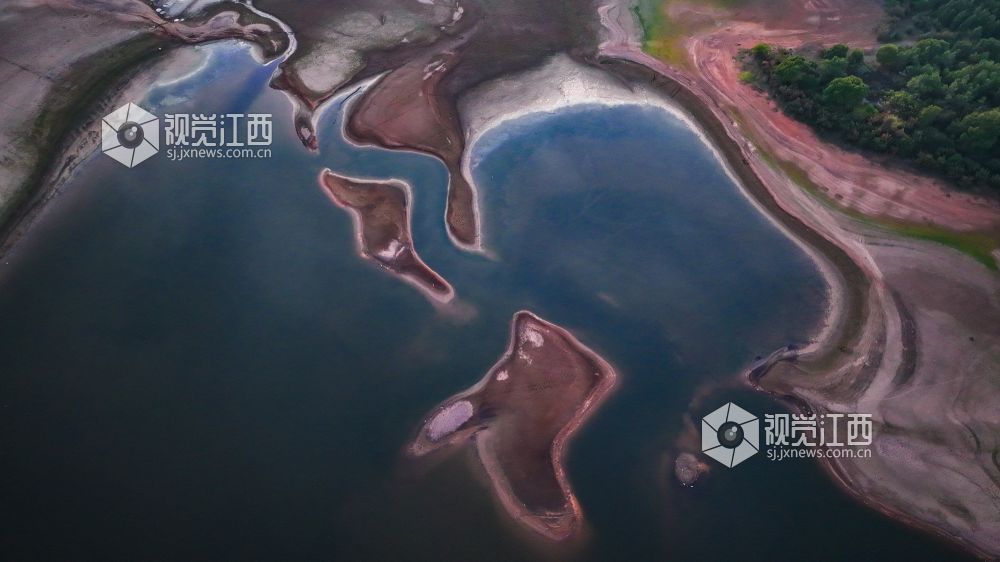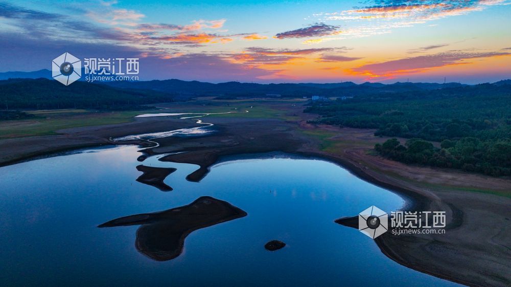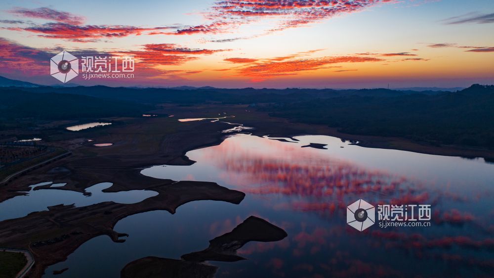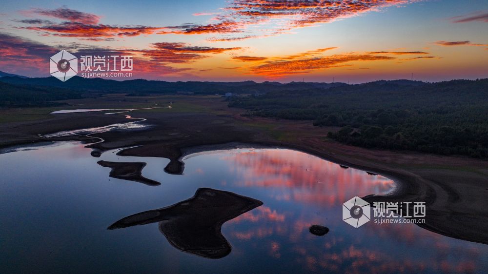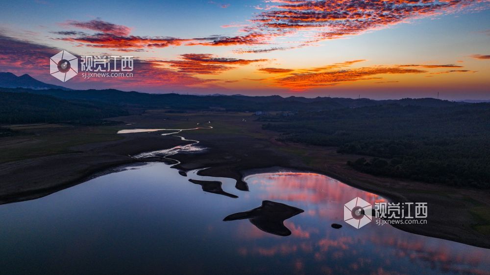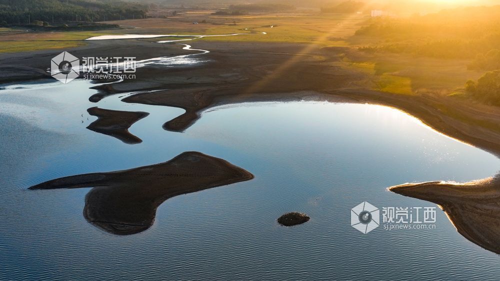 江西省吉安市峡江县水边镇的皂土水库,山清水秀,植被茂盛,百余只白鹭在水面展翅齐飞、畅快嬉戏。在水库的青山绿水间,白鹭如雪花般点缀其中,在蓝天下时而翩翩起落,时而鸟鸣嘤嘤,阳光、青山、绿水、白鹭构成了一道美丽的风景线。