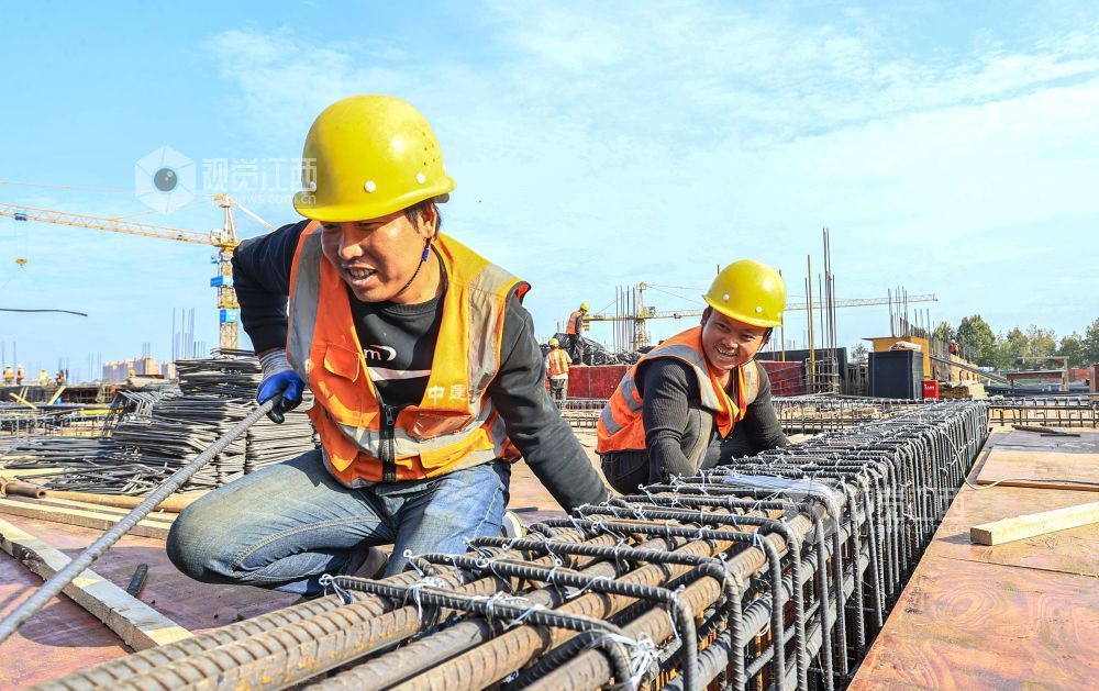 10月24日,江西省湖口县人民医院新址项目工地,工人在加紧施工。近期,湖口县各重点民生项目建设如火如荼,工人们倒排工期,开足马力加紧施工,确保项目建设有序推进。