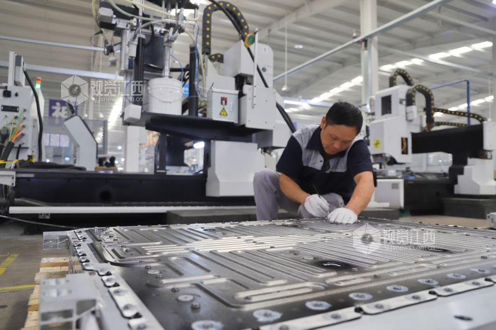 2022年10月25日,在江西省萍乡市芦溪县工业园的江西天铭新能源汽车零部件有限公司智能化生产车间,工人在生产线上忙碌。近年来,江西省萍乡市芦溪县深入实施数字经济“一号工程”,加大力度引进人才,加快推进5G、大数据中心、工业互联网等新型基础设施建设,推动了产业向高端化、绿色化、智能化、融合化方向发展,数字经济呈现出加速发展的良好态势。