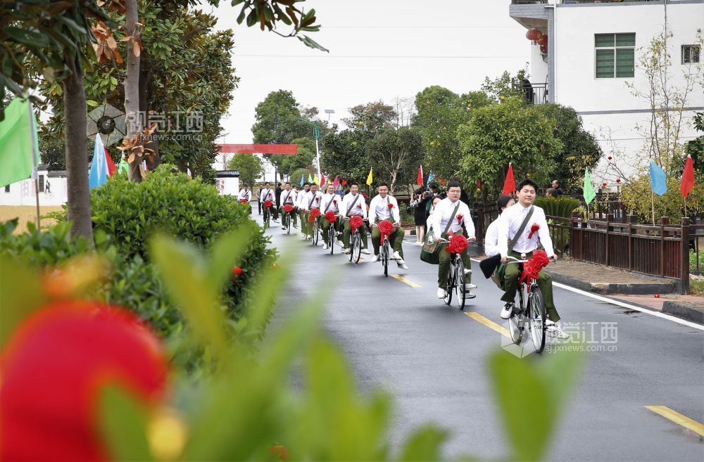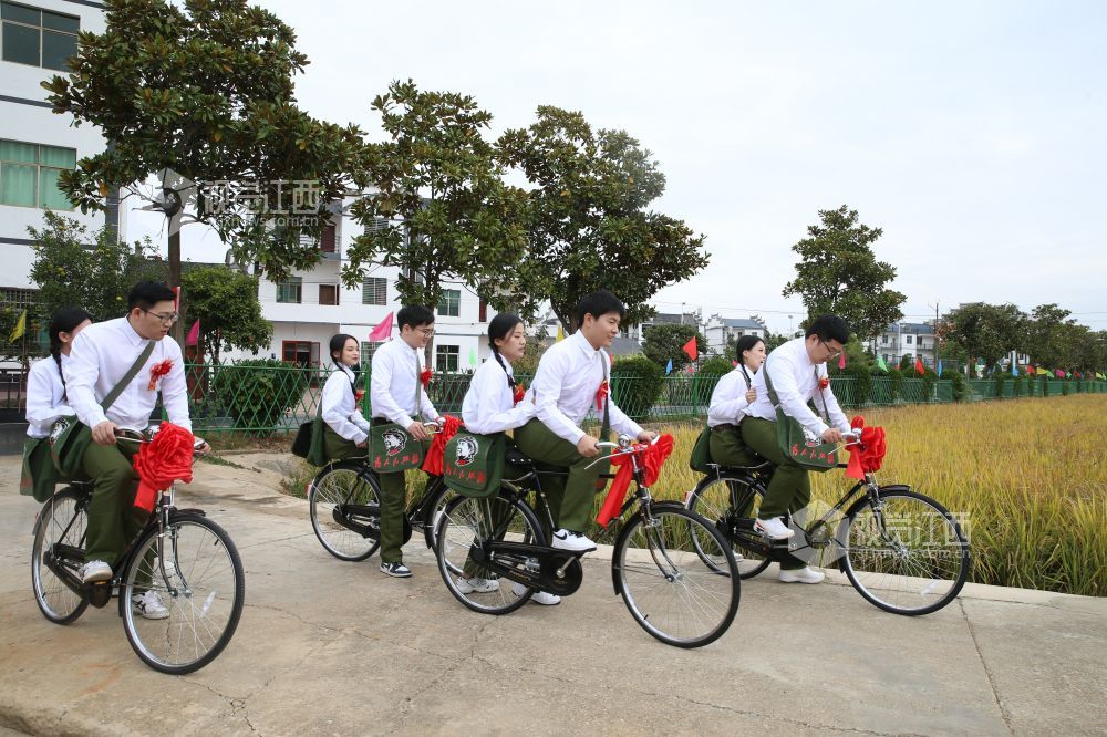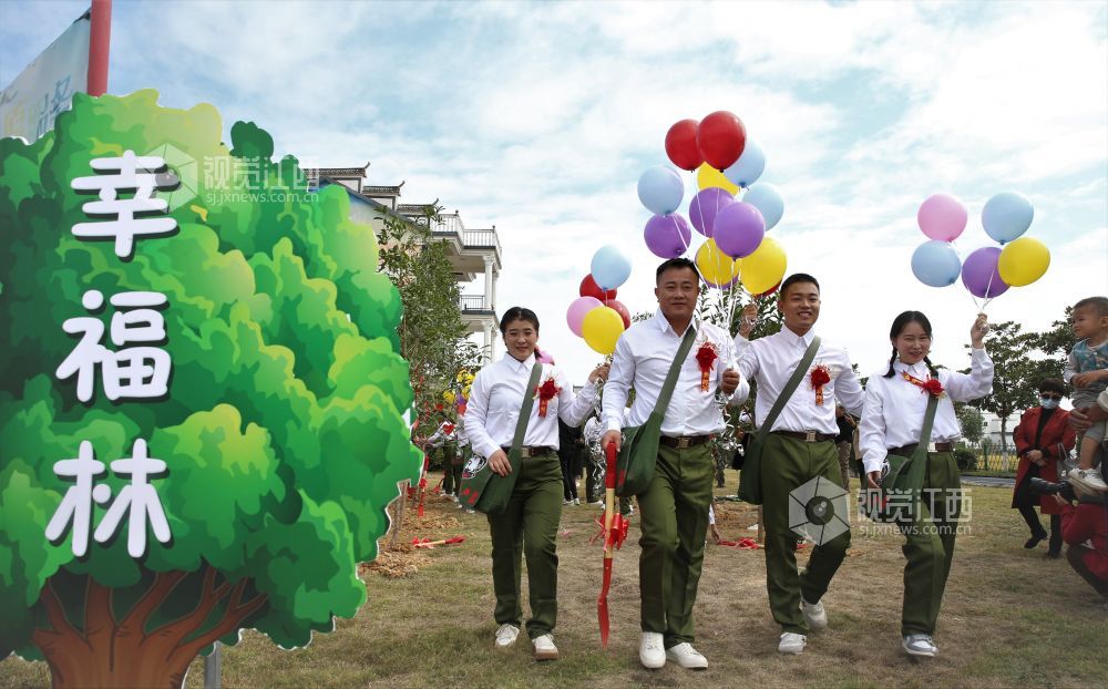 2022年10月29日上午,由江西省鄱阳县总工会、县民政局、团县委、县妇联等单位联合举办的“重返激情燃烧的岁月”——知青主题集体婚礼在该县乐丰镇茨山知青文化广场举行。现场11对新人婚事新办,由县长证婚,集体倡导做婚事移风移俗的引领者,婚事新办,在文明新风中喜结连理。他们并在“爱情林”共同种下了“爱情树”,为美好幸福生活祈福。