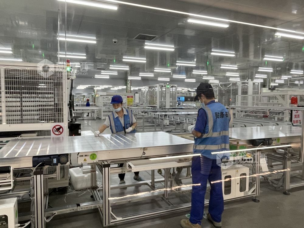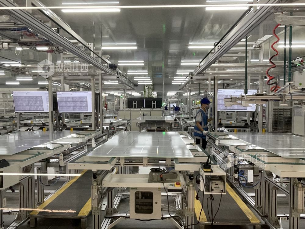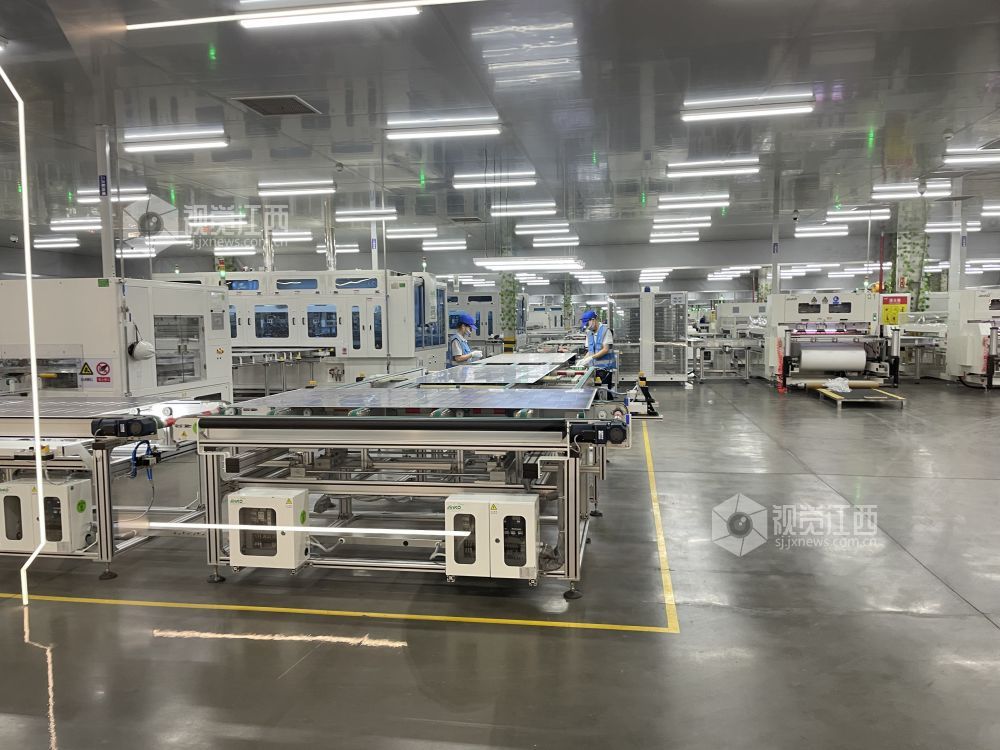 晶科能源成长于上饶经开区,经过多轮产业变革和洗礼,成为上饶本土培育起来的首家市值过千亿上市企业,也即将成为上饶经开区首个营收过千亿的企业。从2015年到现在,短短7年时间,晶科能源先后启动实施“双倍增”“再倍增”“新倍增”项目扩产计划,今年组件累计出货量突破100GW,成为历史上首家实现跨越100GW里程牌的公司。今年第一个8GW光伏组件项目顺利投产、第二个8GW光伏组件项目全面开工,将为我区打造“世界光伏城”,建成“世界一流的光伏制造基地和创新应用桥头堡”目标打下坚实基础,有力助推全区经济运行在防风险和稳增长的基础上实现快马加鞭,在做稳经济大盘的基础上实现更高质量发展。这是2022年10月30日在晶科能源公司拍摄的晶科今年首个8GW光伏组件项目投产。