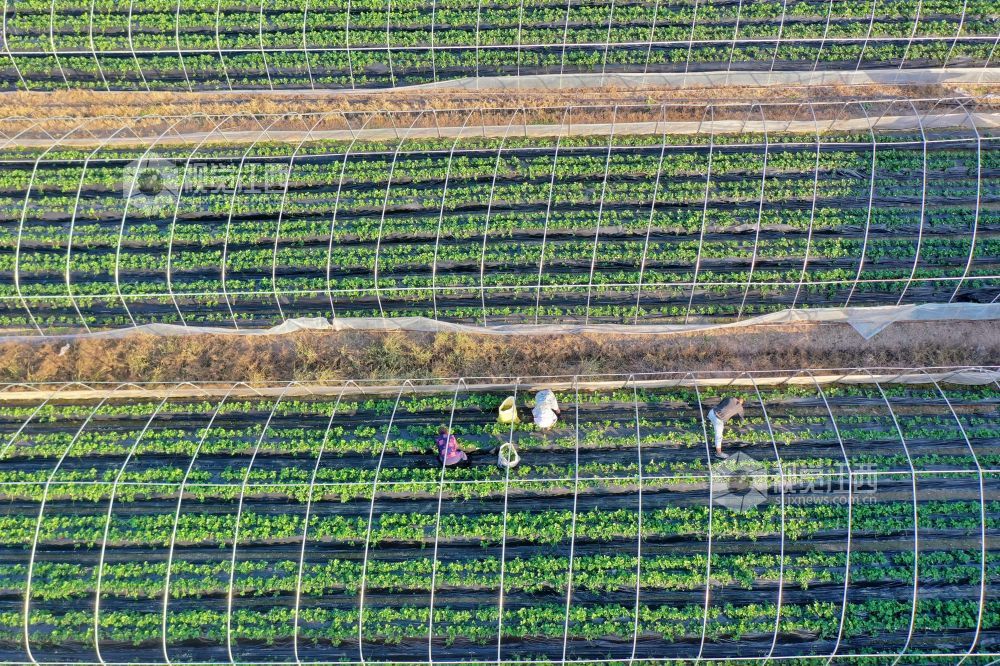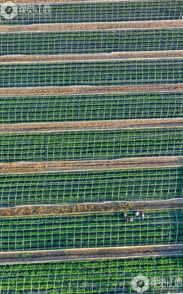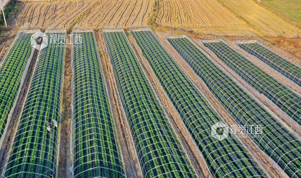 2022年11月1日,天气晴好,江西省萍乡市芦溪县芦溪镇山下村大棚草莓基地,农户们忙着栽种草莓。