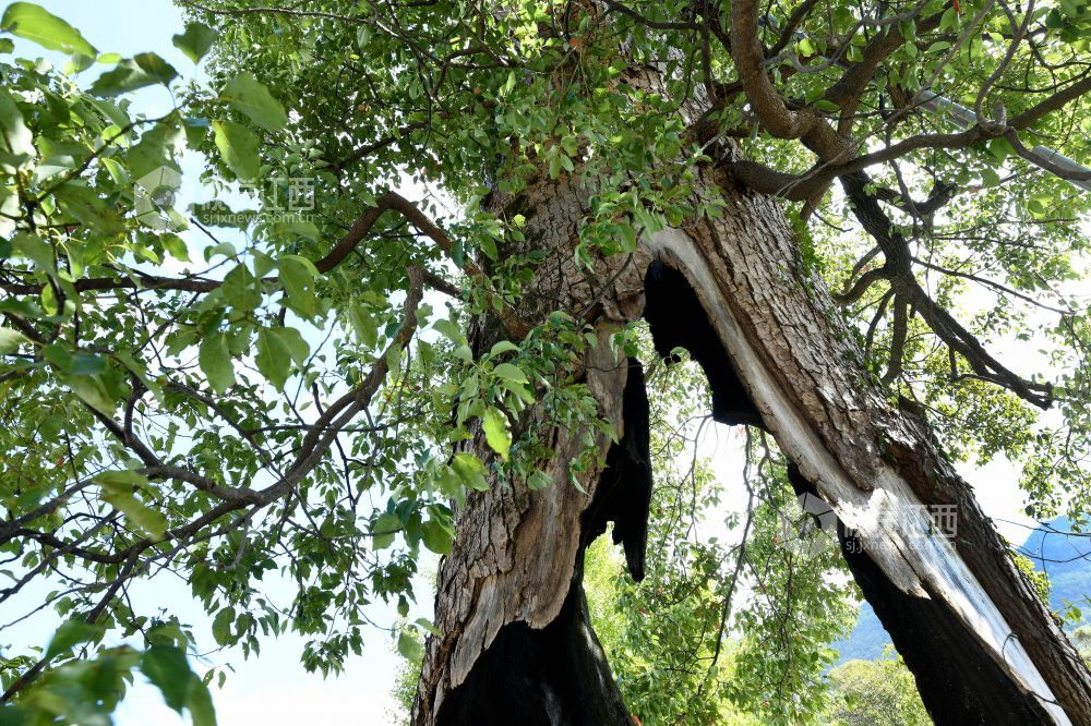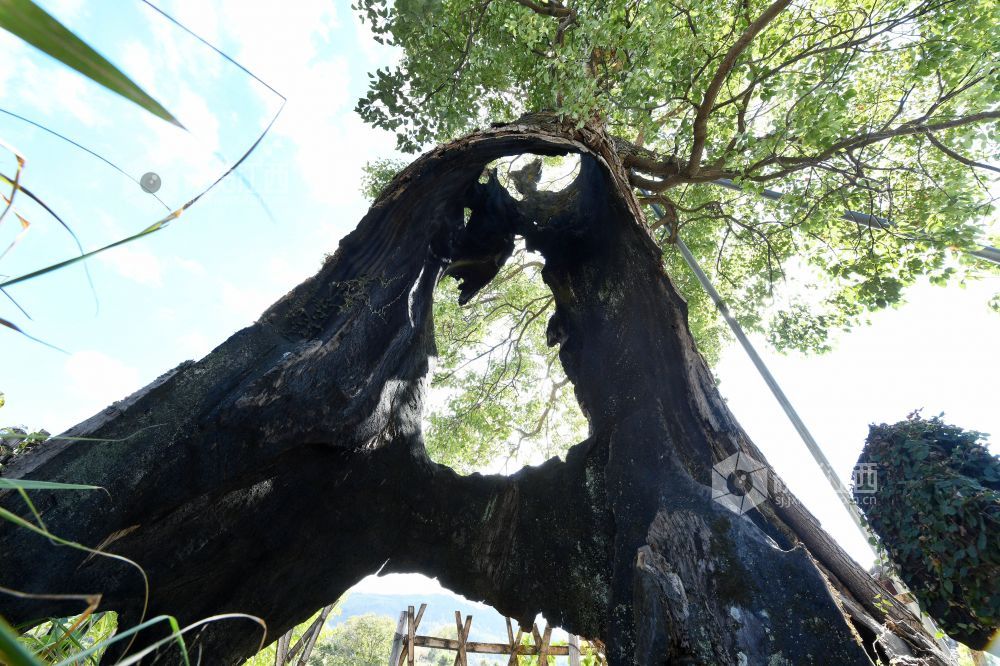 据了解,这棵位于江西省婺源县浙源乡岭脚村村头的“树坚强”是一棵直径近3米多、高十几米、至今已有300年历史的古樟树,因早年遭雷击火烧,致使古树主干内部已经被掏空,仅剩两片树皮支撑。可就在人们认为这棵数百岁高龄的大树就此死亡的时候,奇迹出现了,这棵濒临枯死古树凭借自己顽强的生命力,长出了新枝,而且慢慢长成了枝繁叶茂,因此被当地人称为“树坚强”。