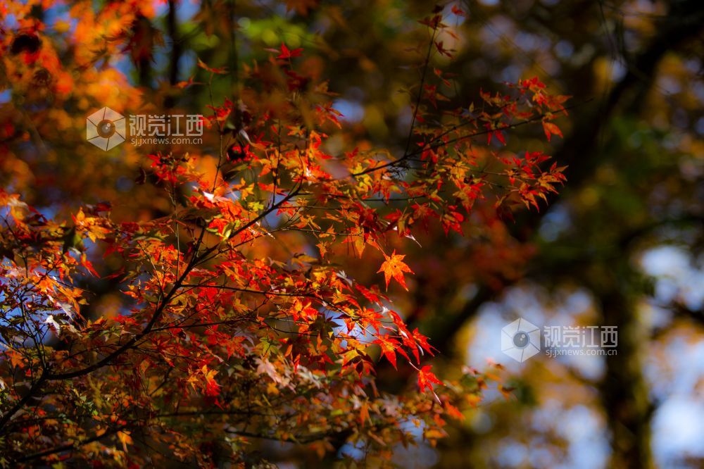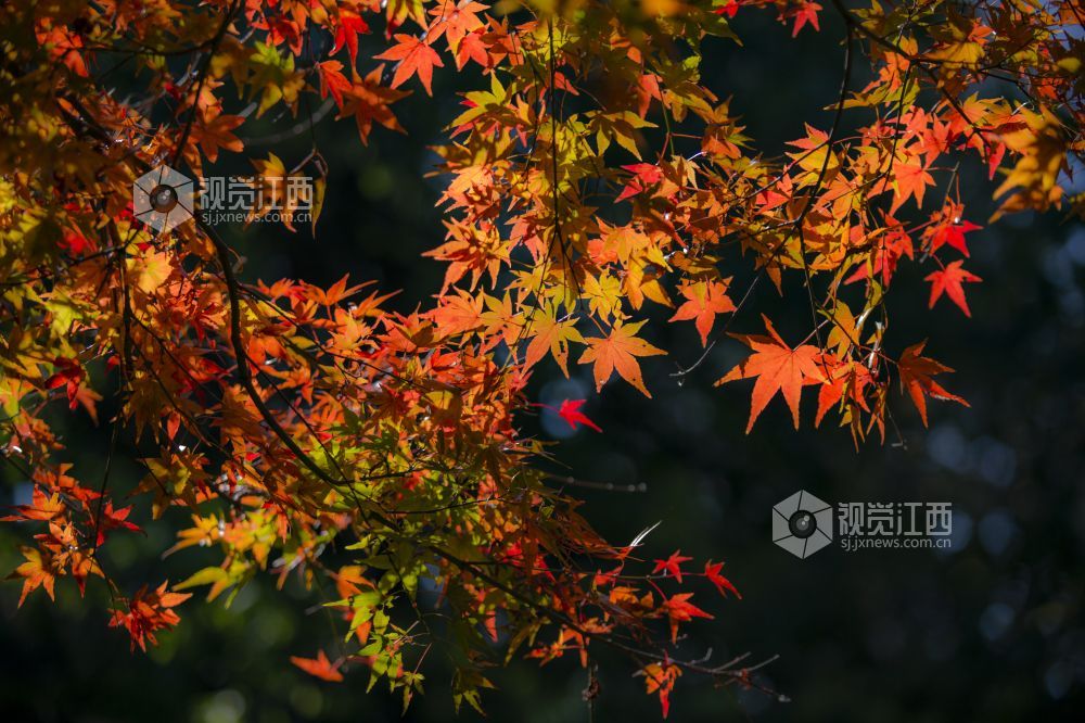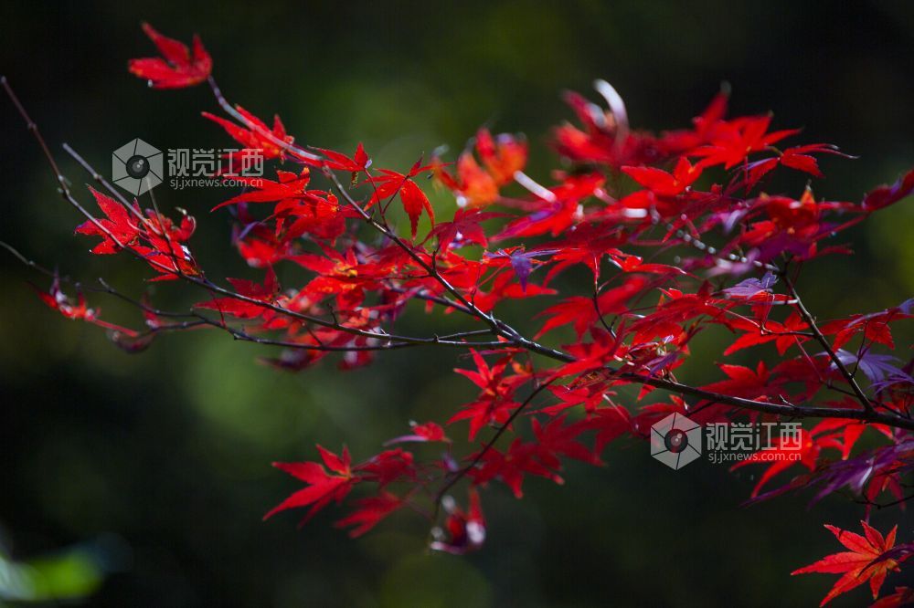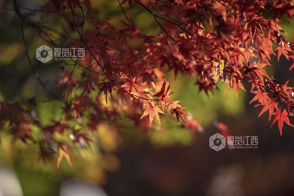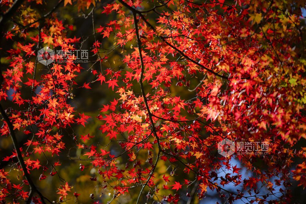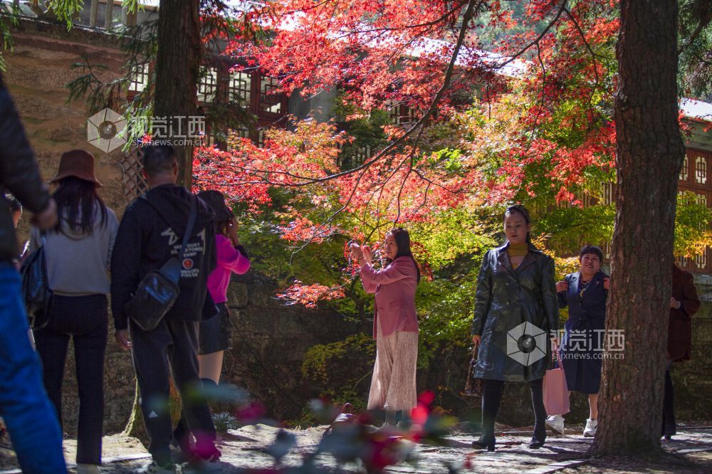 2022年11月6日,江西省九江市庐山风景区天气晴好,“秋色斑斓 秋山如醉”的枫叶美景进入最佳观赏期。火红的枫叶将庐山秋季演绎得绚丽多彩,引得八方游客赏景踏秋来。