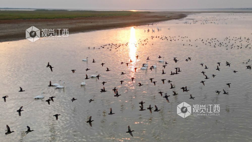 近年来,江西省余干县全力打造湖光山色最美县,不断加大生态环境保护,加强鄱阳湖湿地环境治理,蓝天、碧水、绿地的自然生态环境已经成为鸟类天然栖息王国,乡村田野、河岸水域万鸟齐飞的景象,已成为一道道美丽的风景线。