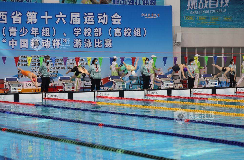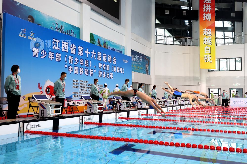 2022年11月8日,江西省第十六届运动会“中国移动杯”青少年部(青少年组)游泳比赛在湖口县游泳馆开赛,来自全省的11支代表队共500名运动员参赛。