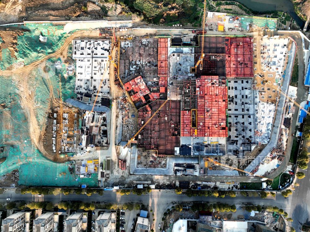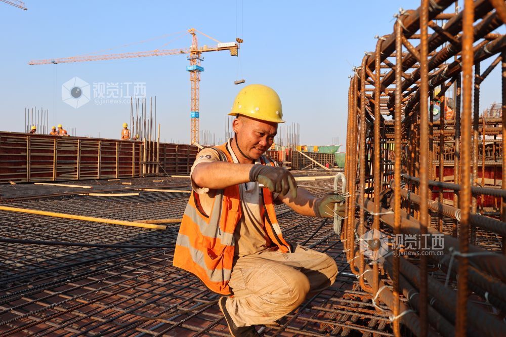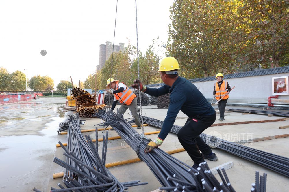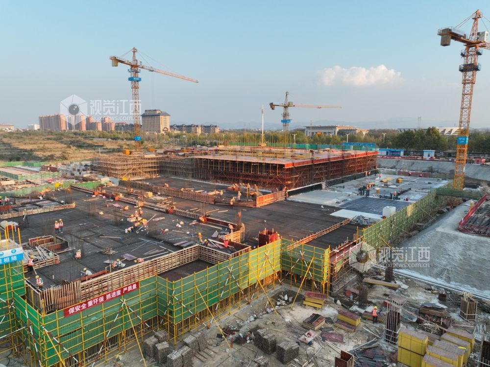 2022年11月9日,江西省九江市湖口县人民医院整体搬迁项目建设者加快推进,呈现一派繁忙景象。