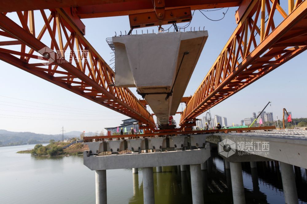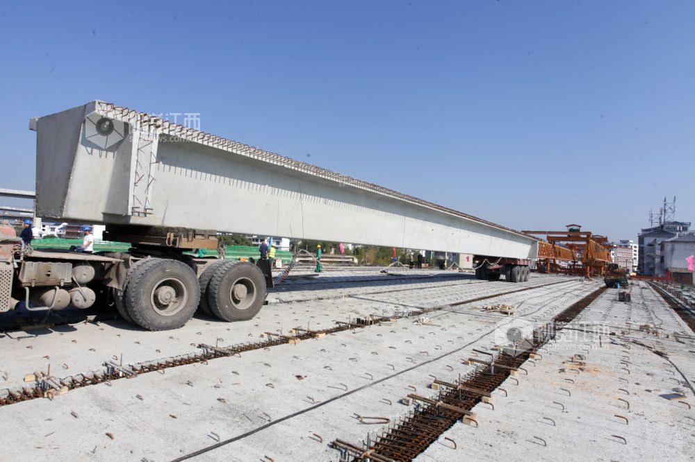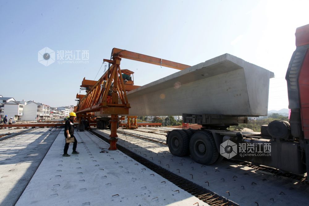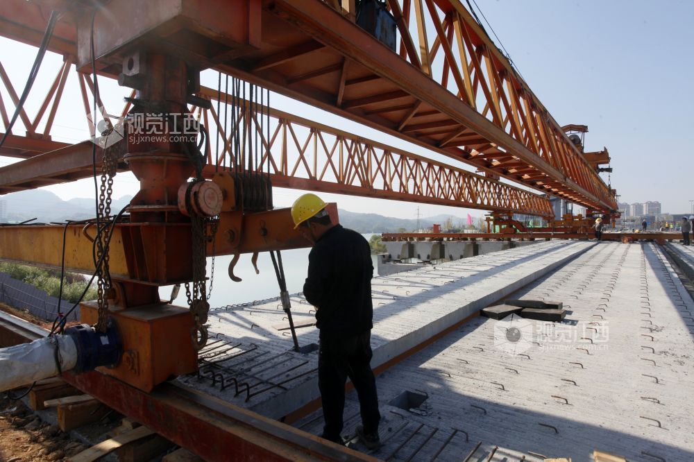 11月8日,笔者在江西上饶市灵溪大桥危桥重建现场看到,工人们正在吊装大桥大梁。