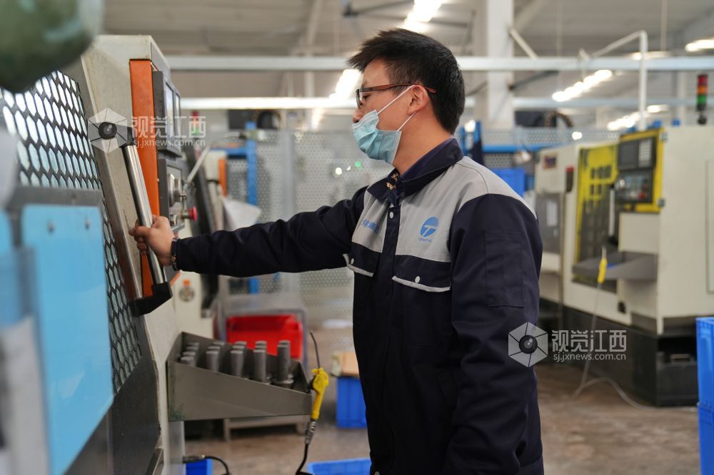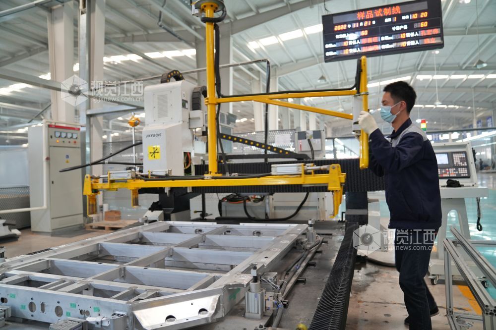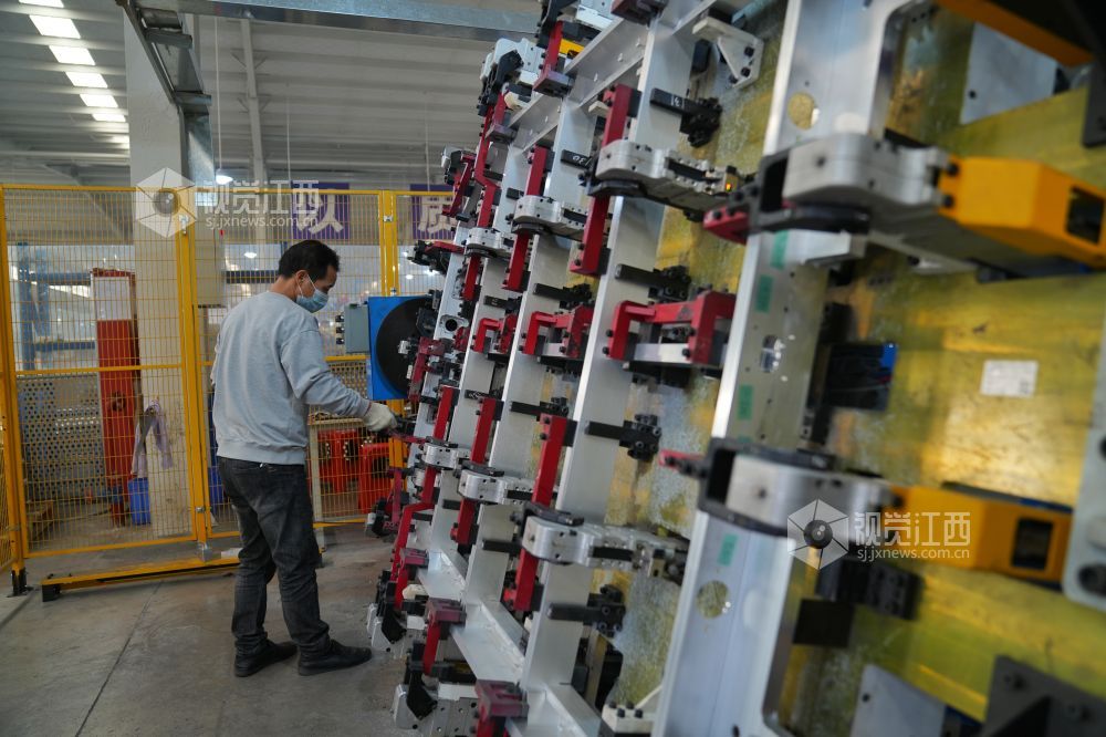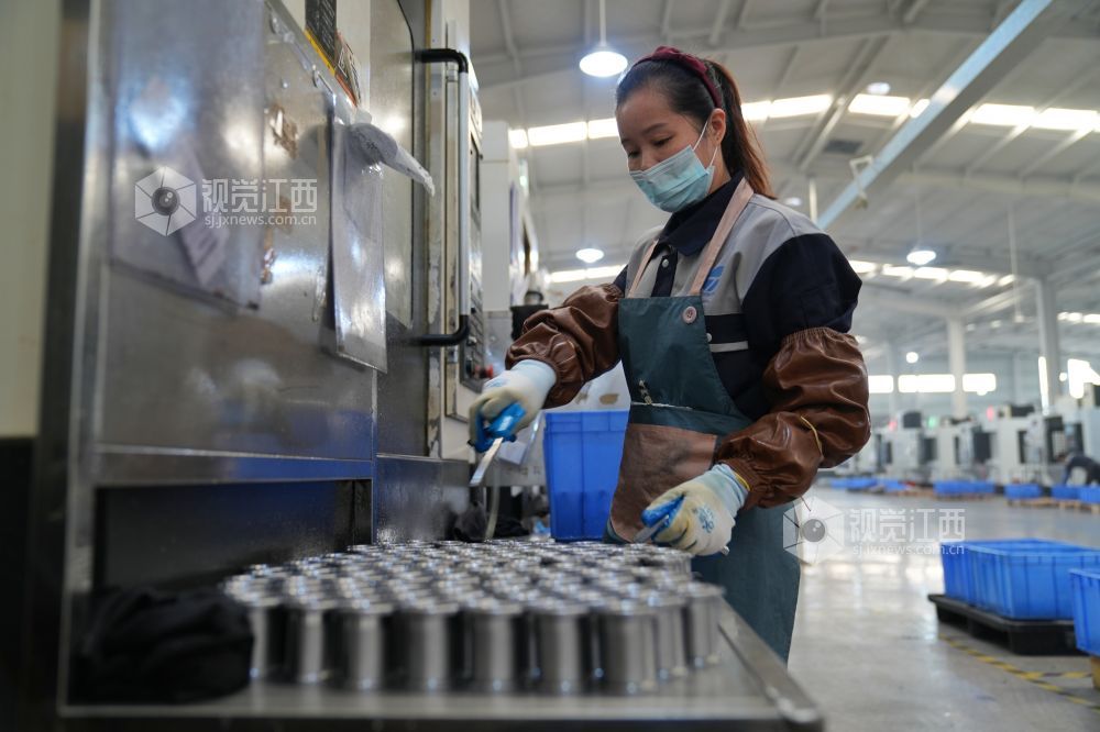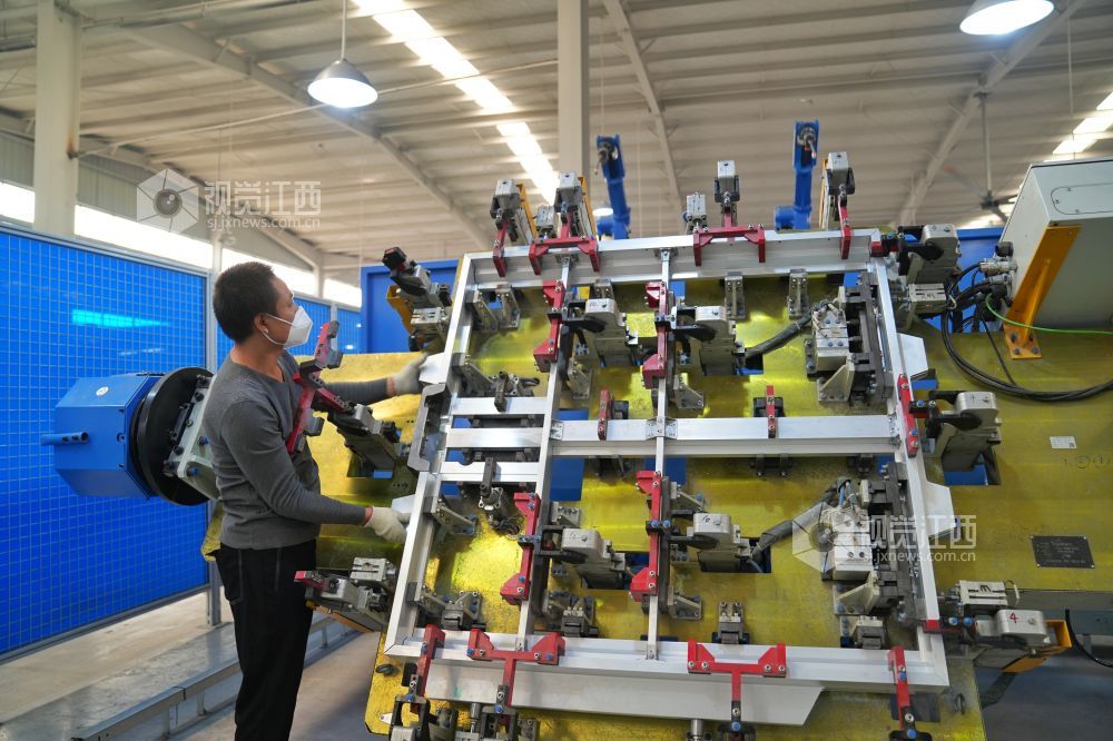 2022年11月21日,工人在江西省萍乡市芦溪县工业园的江西天铭新能源汽车零部件有限公司智能化生产车间生产线上忙碌。