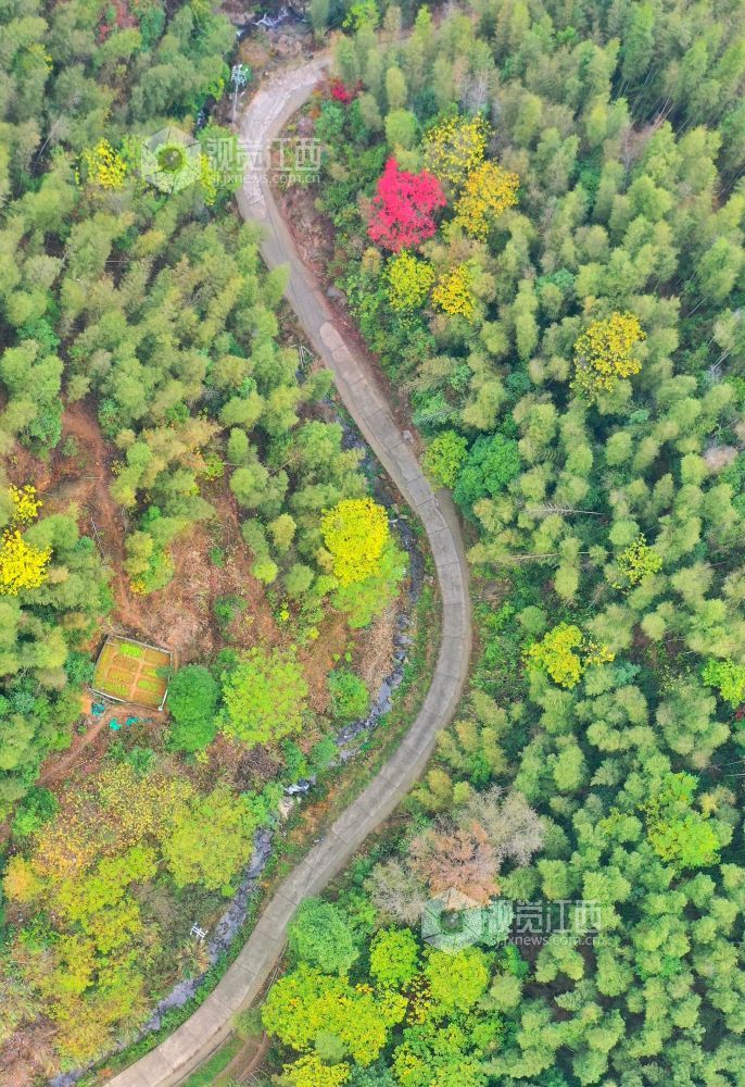 2022年11月24日,江西省萍乡市芦溪县芦溪镇水山村山林,层林尽染,五彩斑斓,径陌交错,美不胜收。