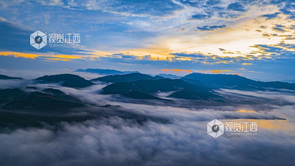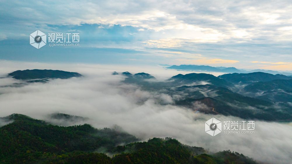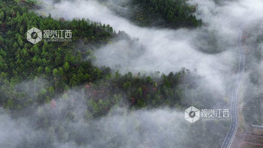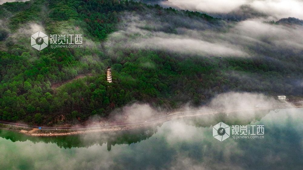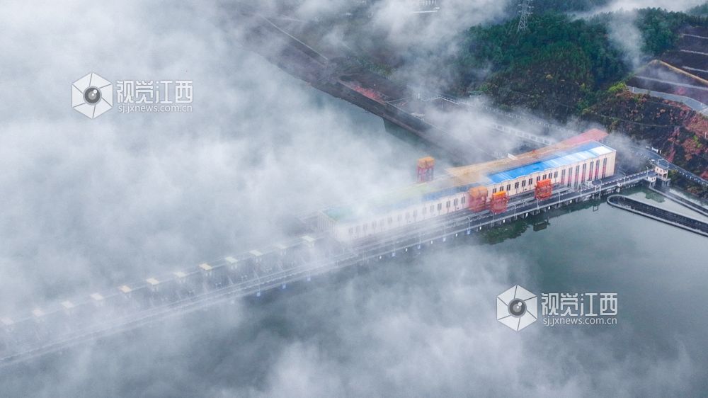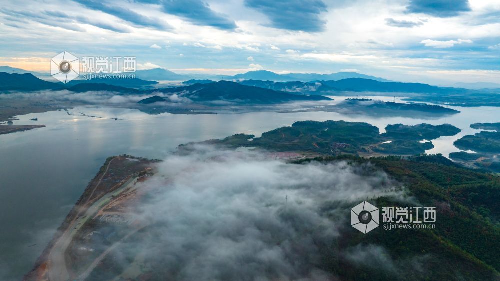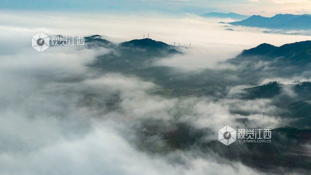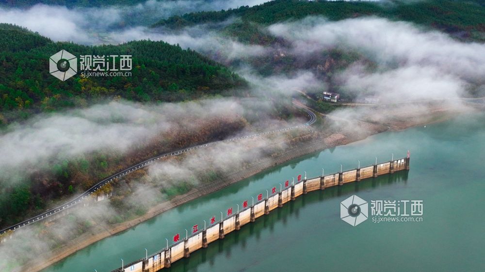 阵雨过后的清晨,正是观看云海的最佳时机。较大的昼夜温差使得江西省峡江县水利枢纽的坝上和上游的蒋沙移民新村形成云海日出的景观。放眼远望,漫漫云海在座座山峰间奔涌,时如飘逸的轻纱,时如滚滚波涛。莽莽群山和赣江之中,云海翻腾,云雾弥漫、波澜壮阔,蔚为壮观。云雾缭绕的村庄与云海、形成一幅画卷,美不胜收。