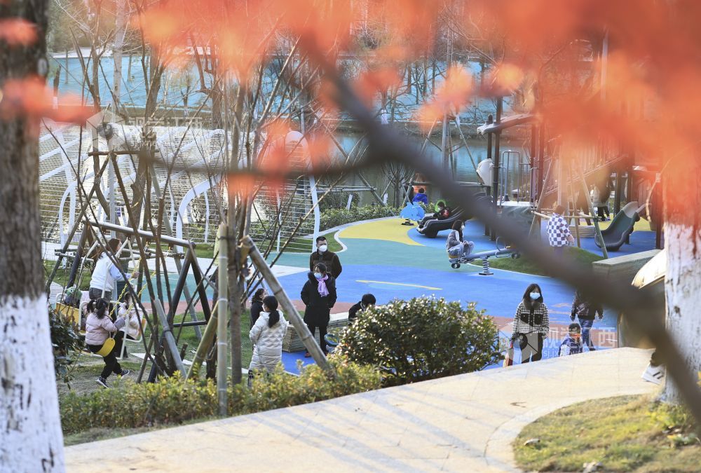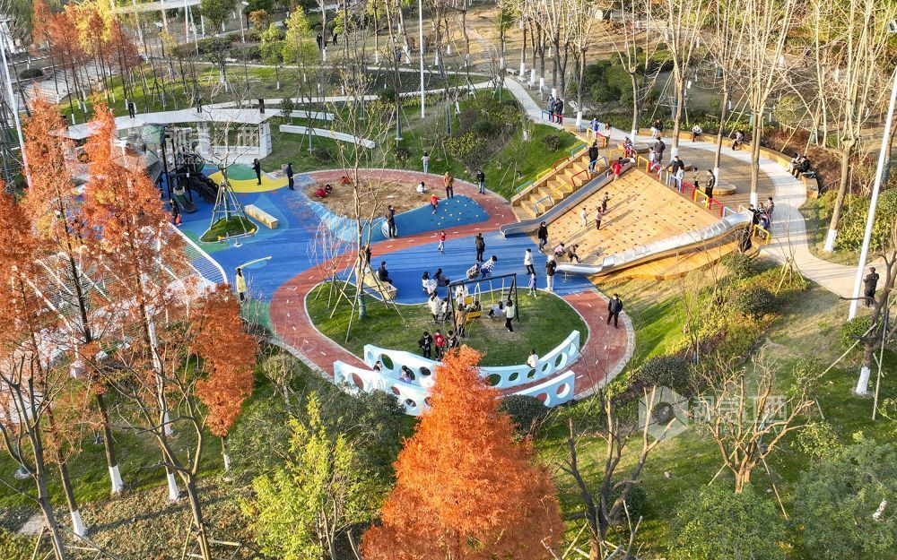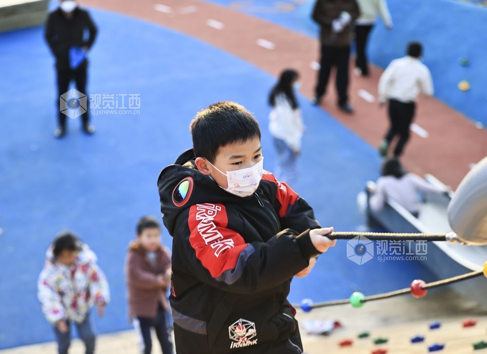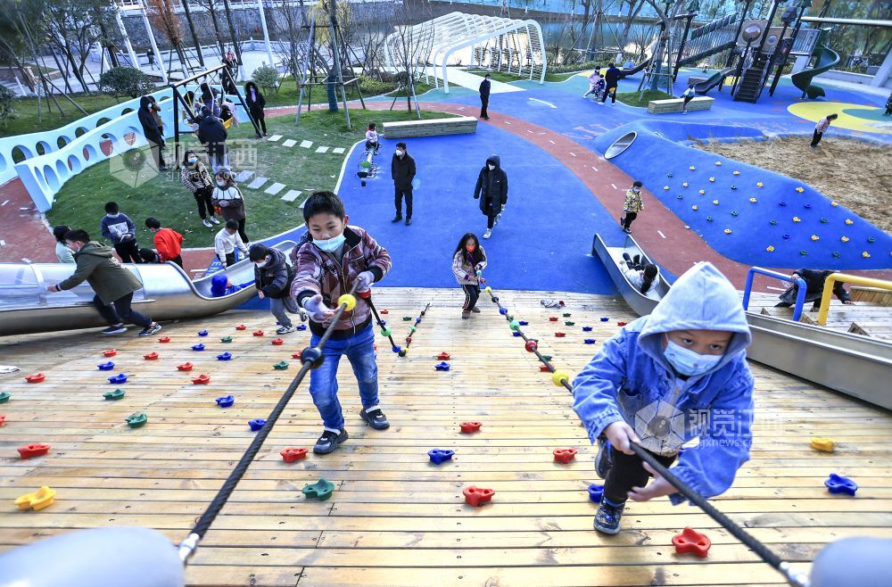 12月17日,江西省湖口县的一处湿地公园内,许多小朋友在儿童主题小游园玩耍。