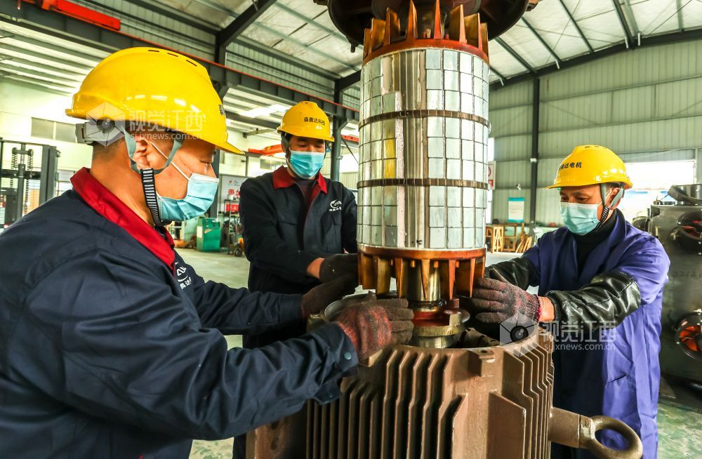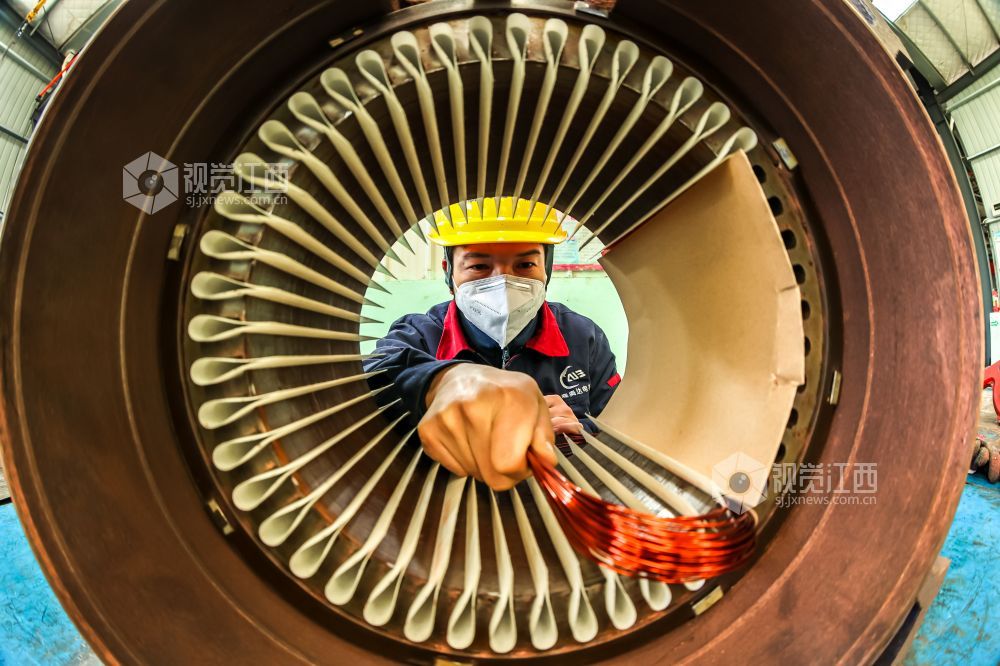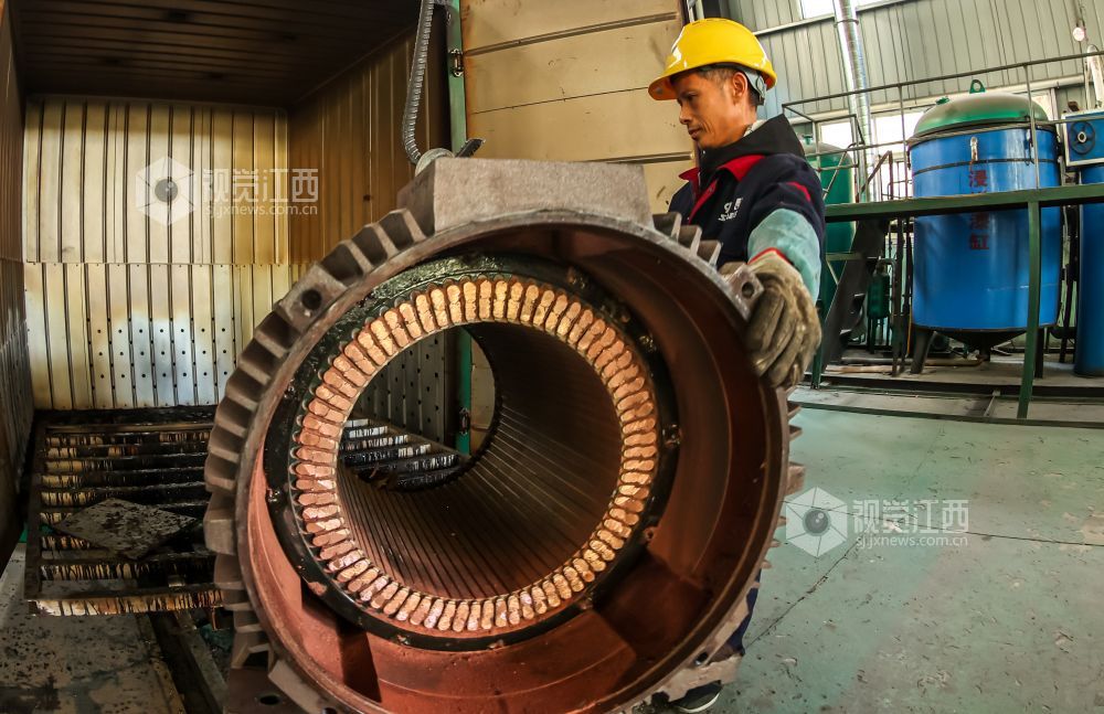 2022年12月17日,江西省瑞昌市森奥达科技有限公司车间内一派繁忙景象,工人们正在为华北油田进行旧电机改造。