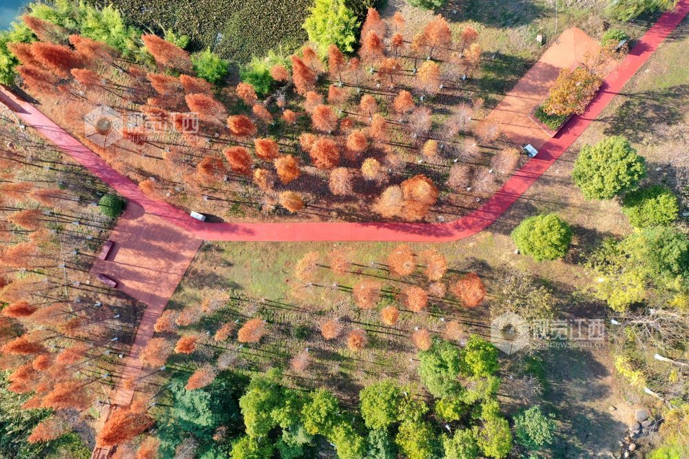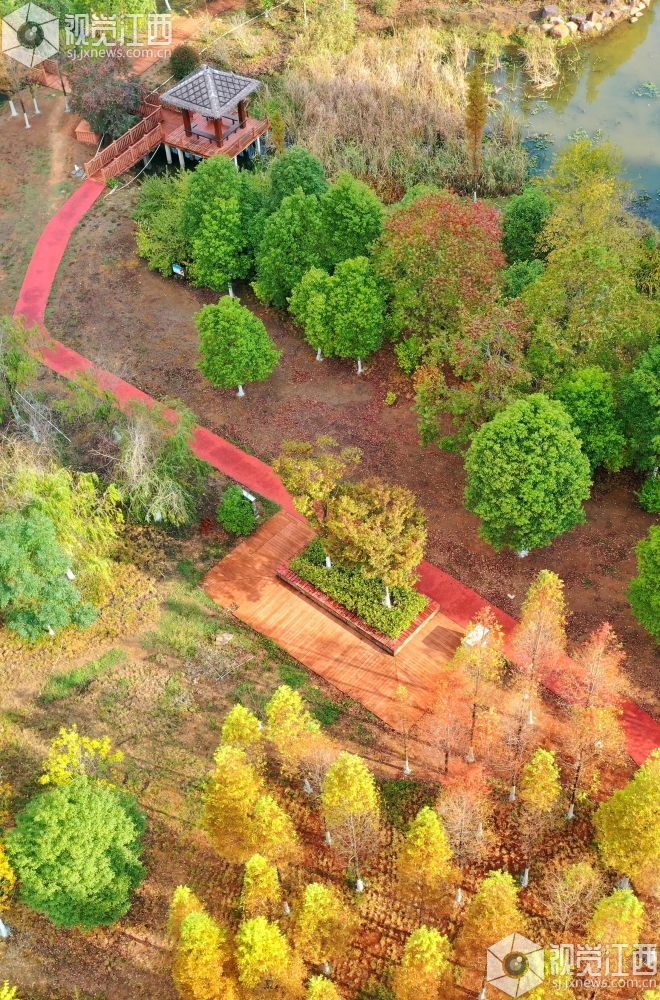 2022年12月22日,江西省萍乡市芦溪县芦洲园湿地公园风光旖旎,色彩斑斓,碧波荡漾,景色如画,呈现出一幅人与自然和谐相处的生态画卷,成为市民冬日暖阳下休闲的好去处。