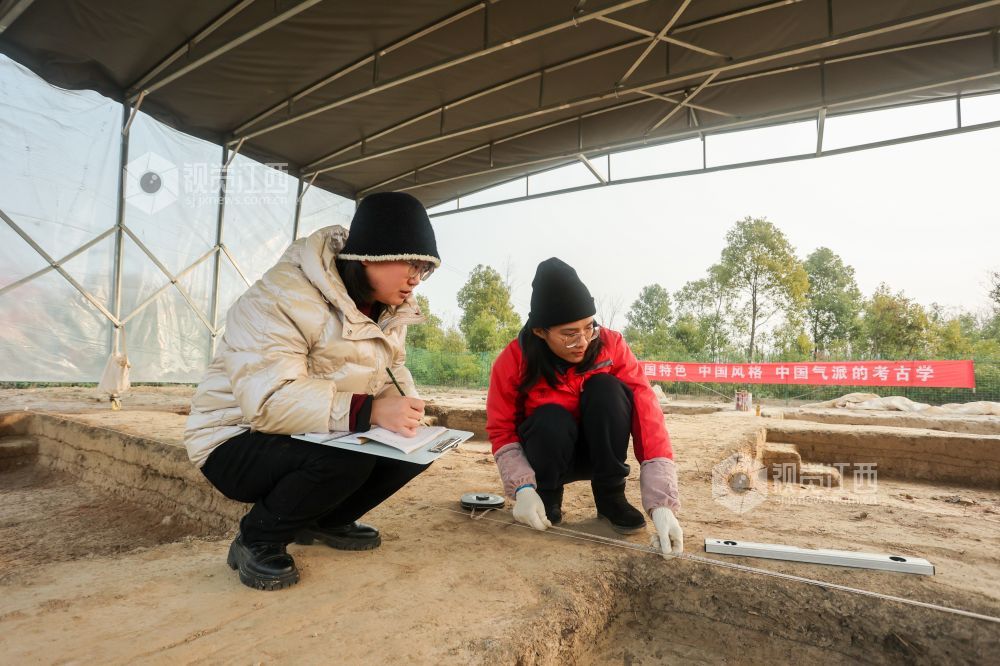 2023年1月3日,江西省九江市柴桑区马回岭镇富民村,工作人员正在九江荞麦岭遗址群岭头上遗址考古发掘现场作业。