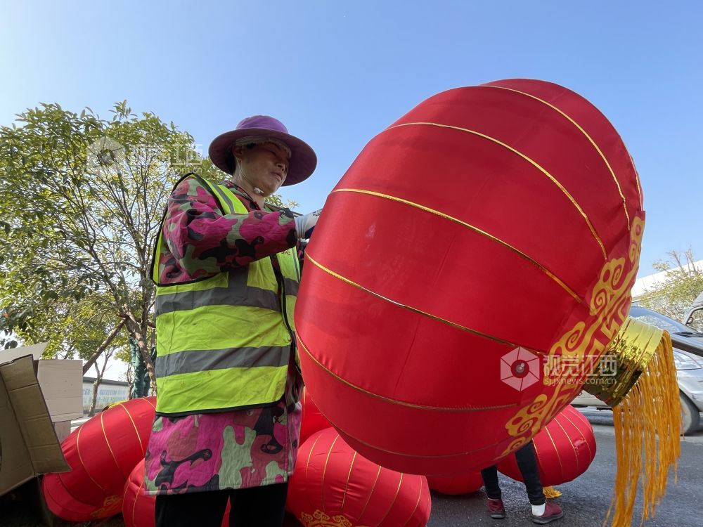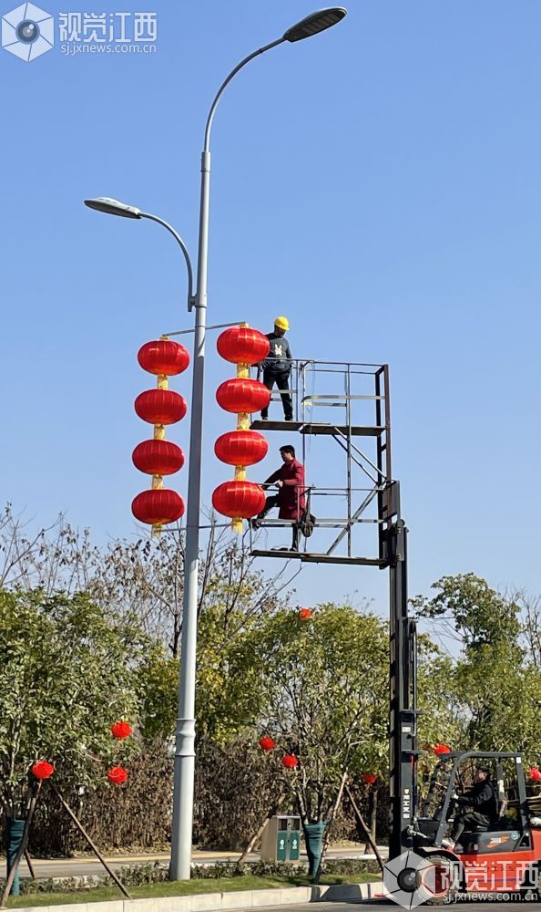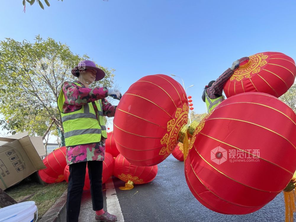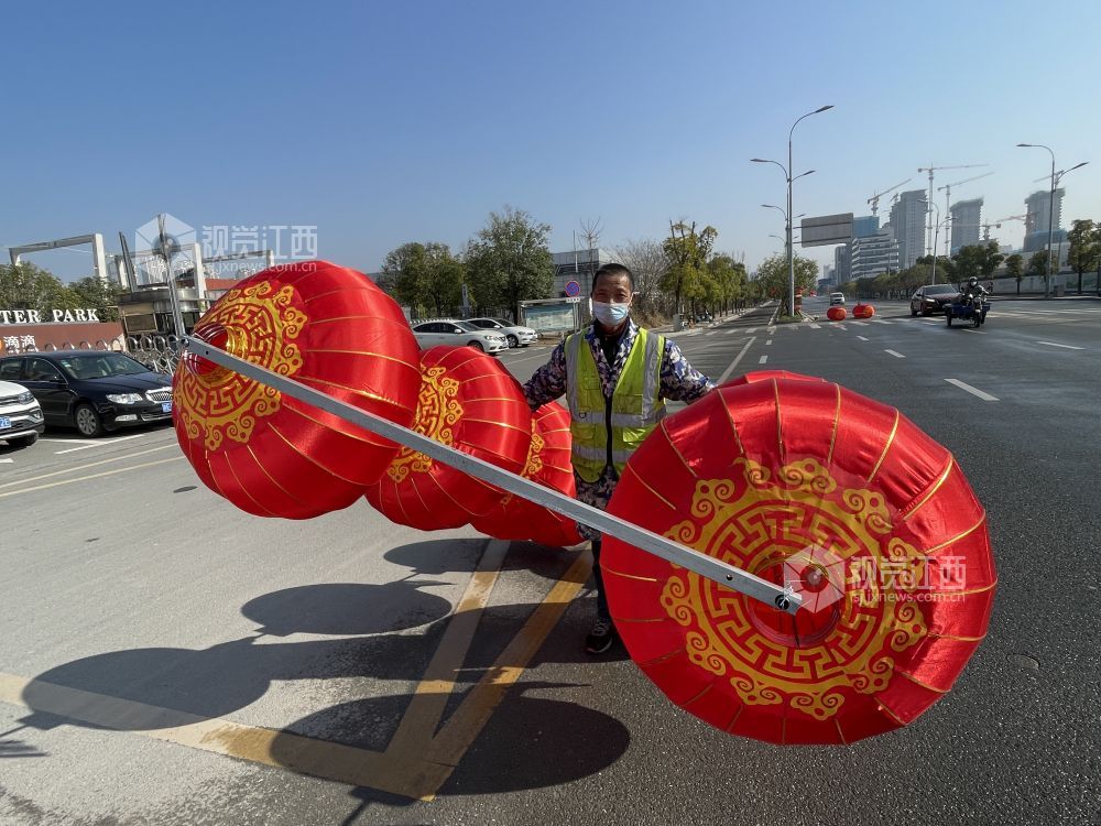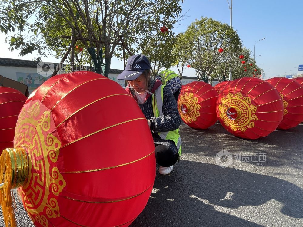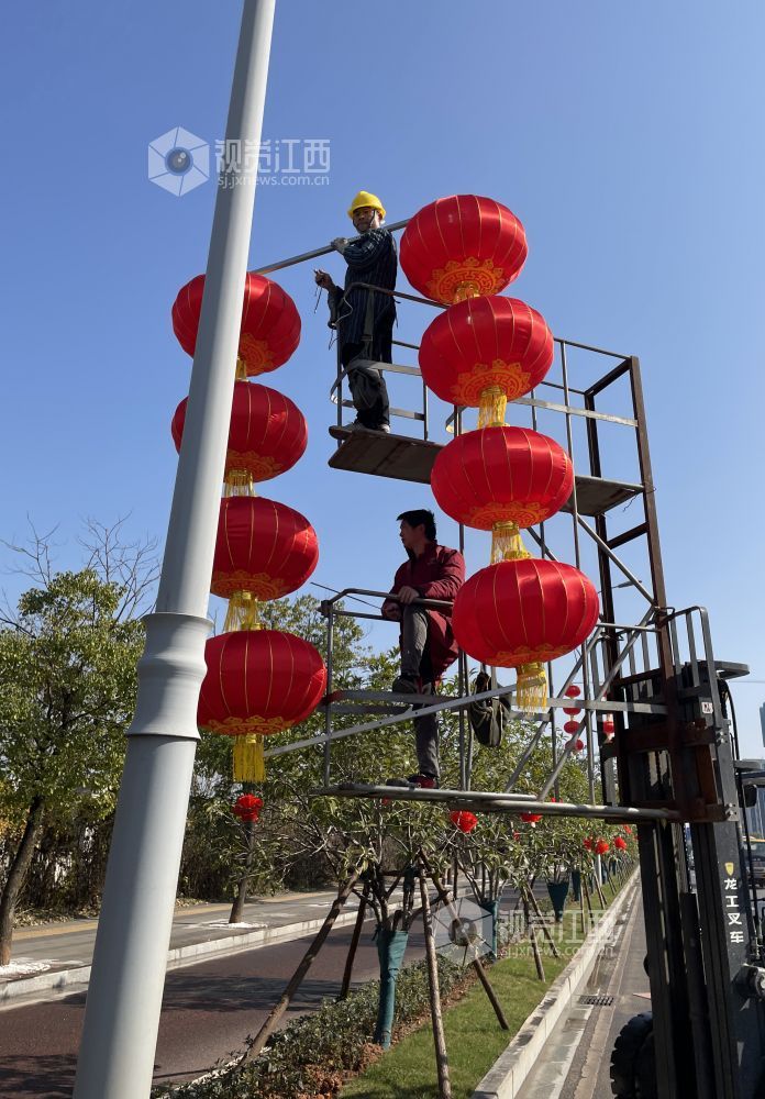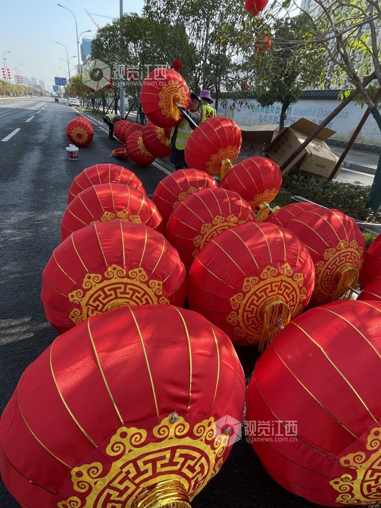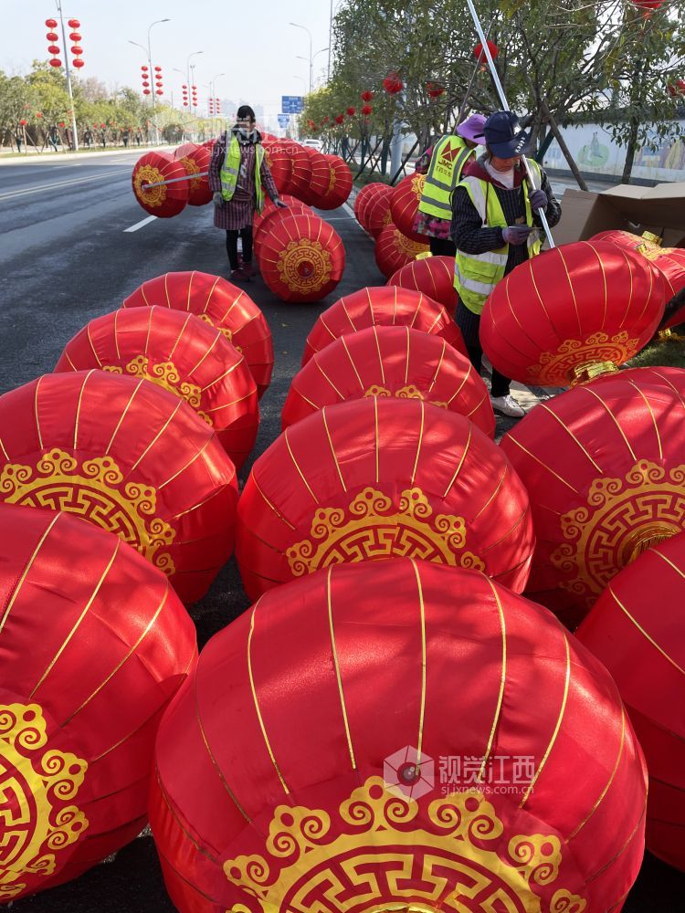 春节临近,江西省上饶市城区主要道路上挂起了大红灯笼,红红的灯笼让整个城市红了起来,处处洋溢着喜庆、祥和的节日氛围。这是2023年1月7日在江西省上饶市信州区茅家岭街道拍摄的一组画面。