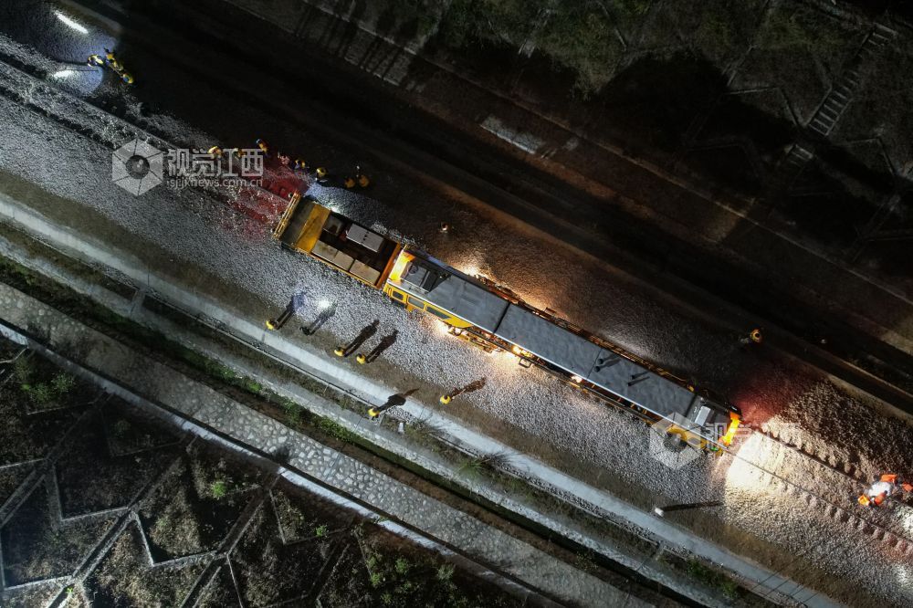 本次施工对技术水平与安全卡控要求极高,南铁鹰潭工务机械段出动12台捣固车、稳定车大型养路机械参与拨接施工,保障改线施工按时完成。
