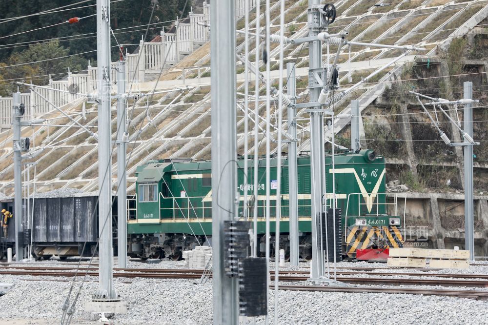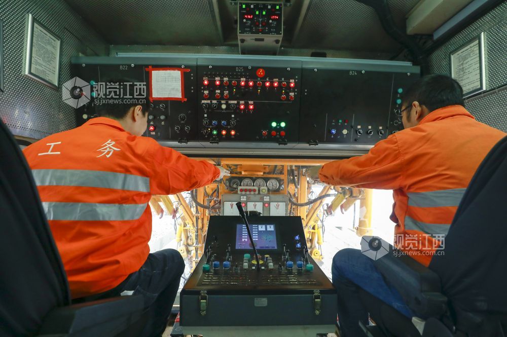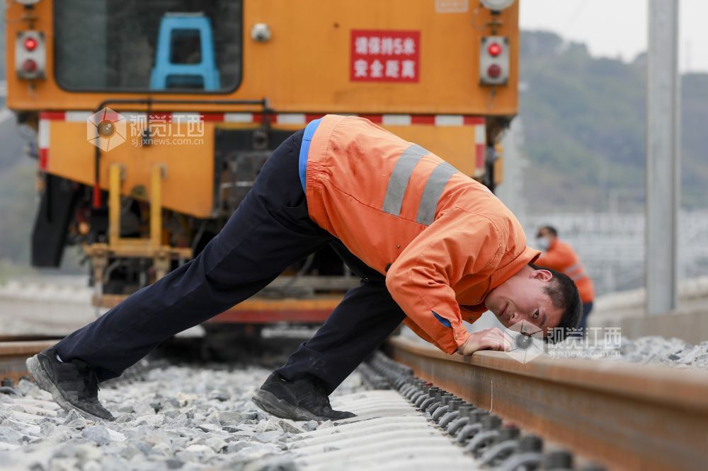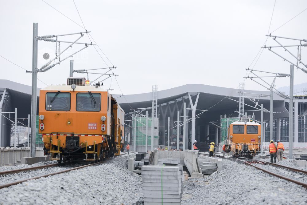 1月7日,福厦高速铁路福州南站,中国铁路南昌局集团公司鹰潭工务机械段的职工们正在加紧进行道岔捣固施工,提升线路质量,助力福厦高速铁路早日开通。