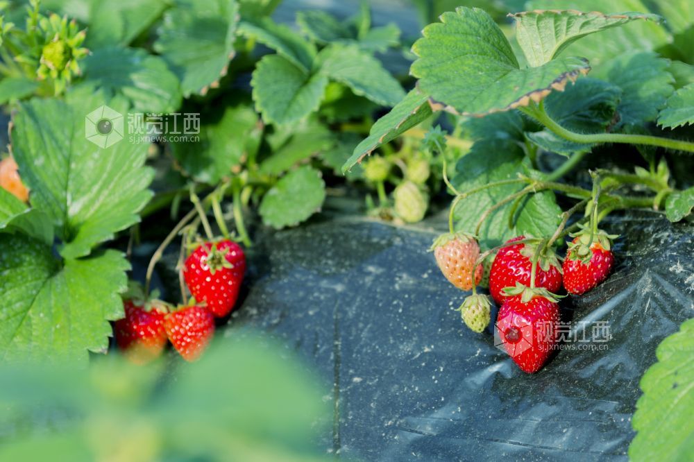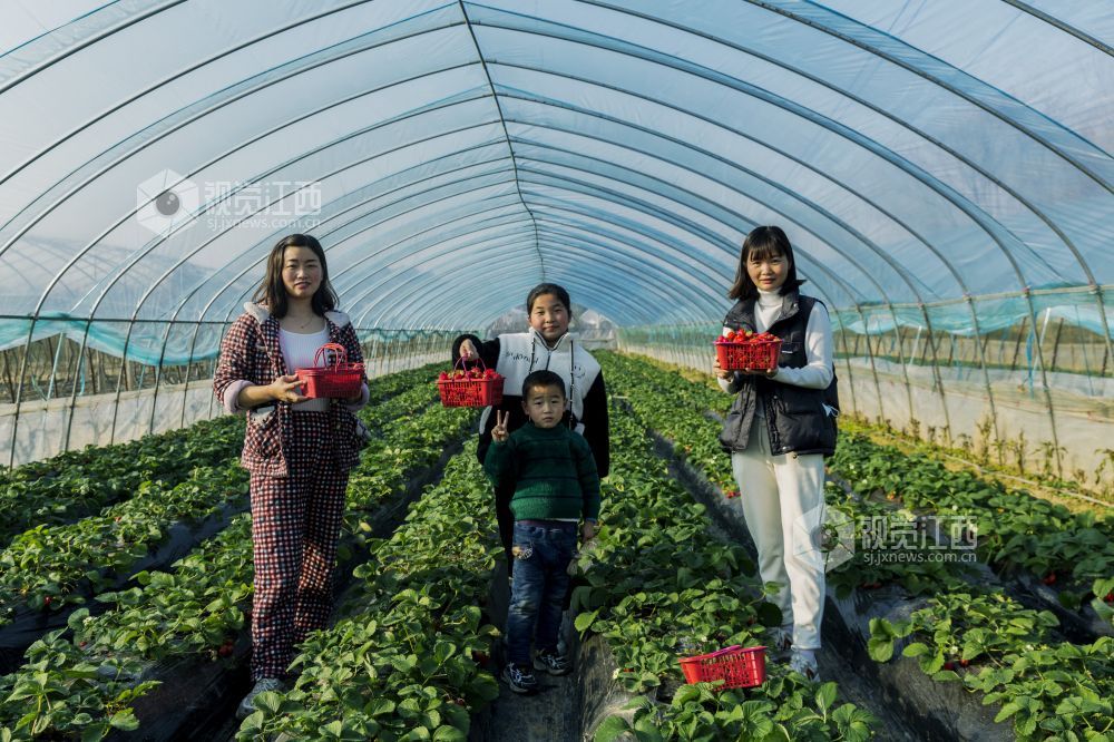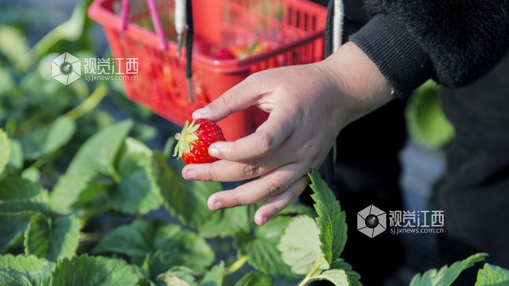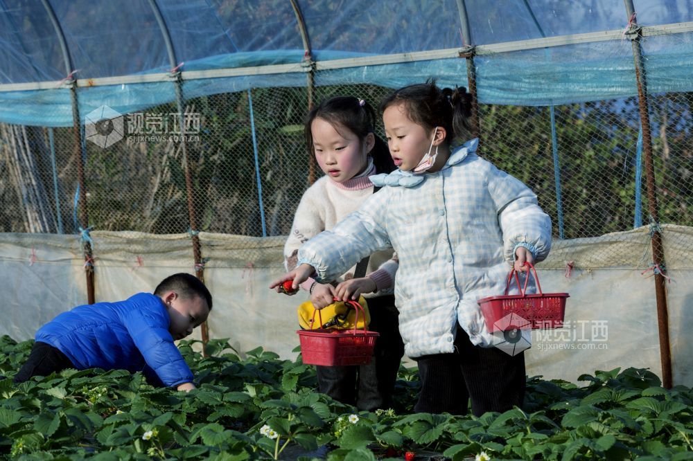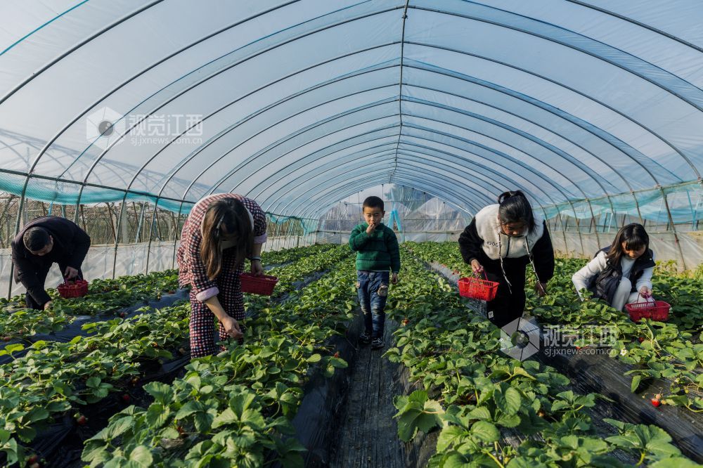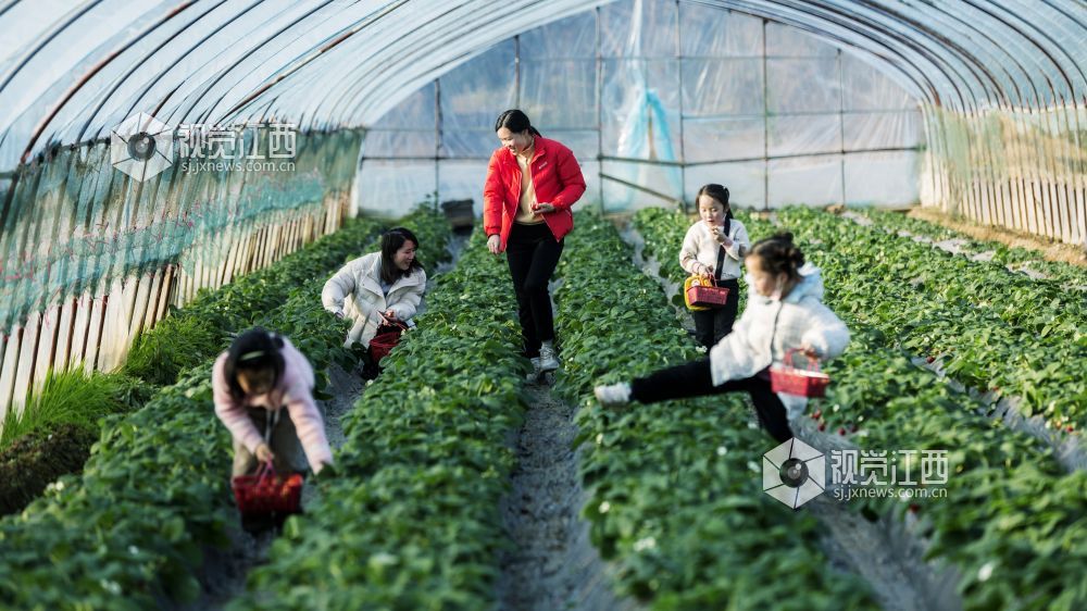 1月8日,在江西省新余市仙女湖区仰天岗办事处湖陂村的乡村振兴基地上,前来采摘草莓的人络绎不绝。