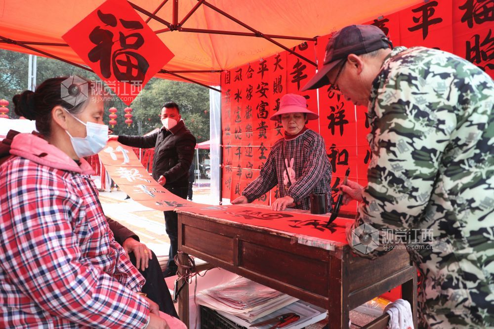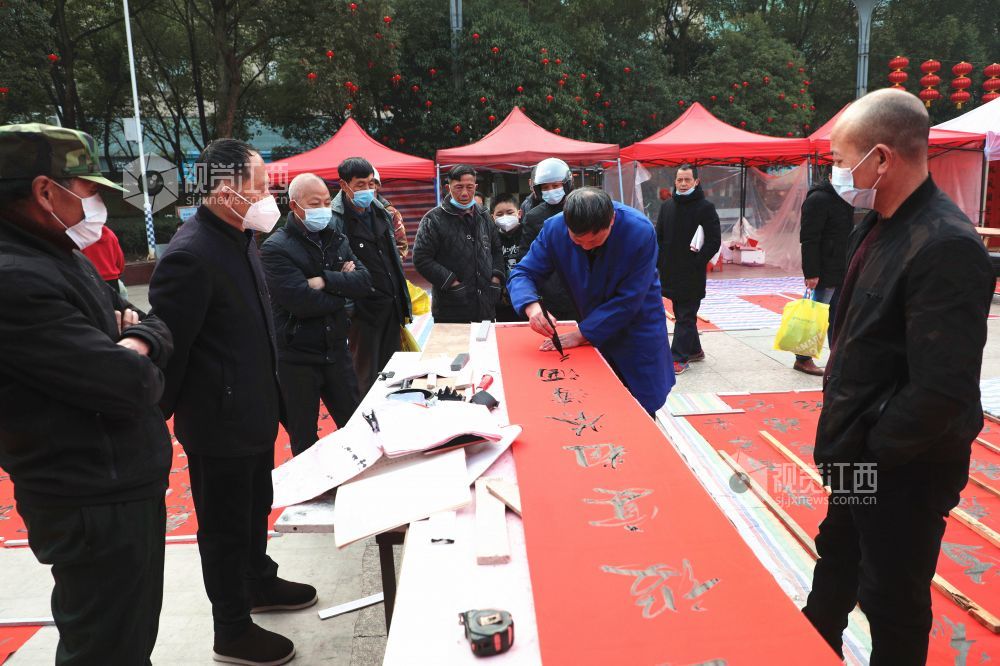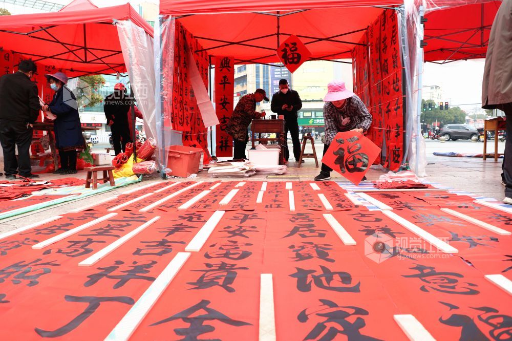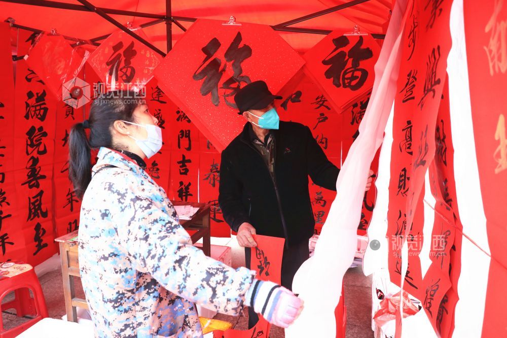 春节临近,在素有“中国书法之乡”美誉的江西省永新县,手写春联倍受广大市民青睐。1月11日,在该县的中心广场上,书法爱好者们现场挥毫泼墨,为前来购买春联的市民精心书写春联。手捧着一副副精美的春联,市民的喜悦之情溢于言表,整个现场洋溢着新春祥和的喜庆氛围。