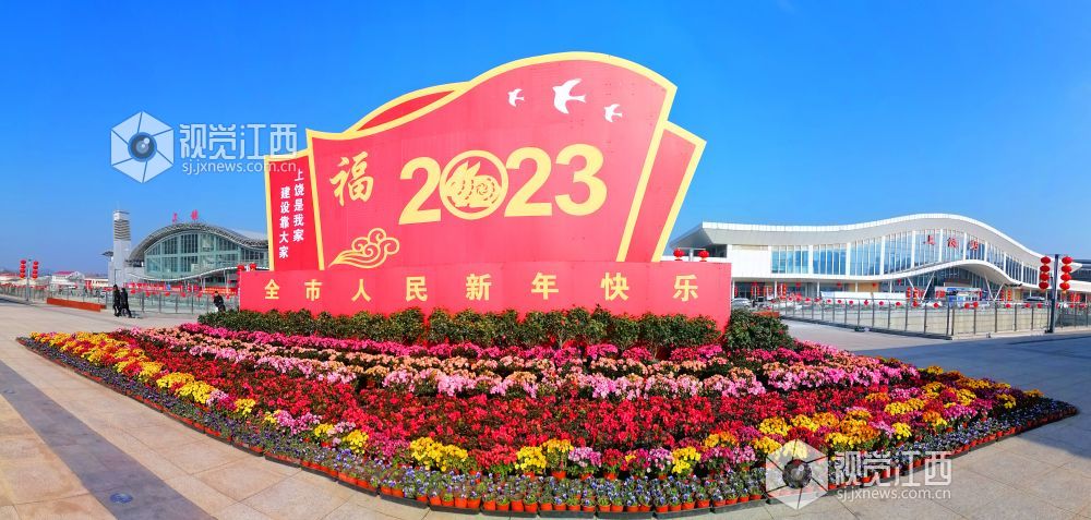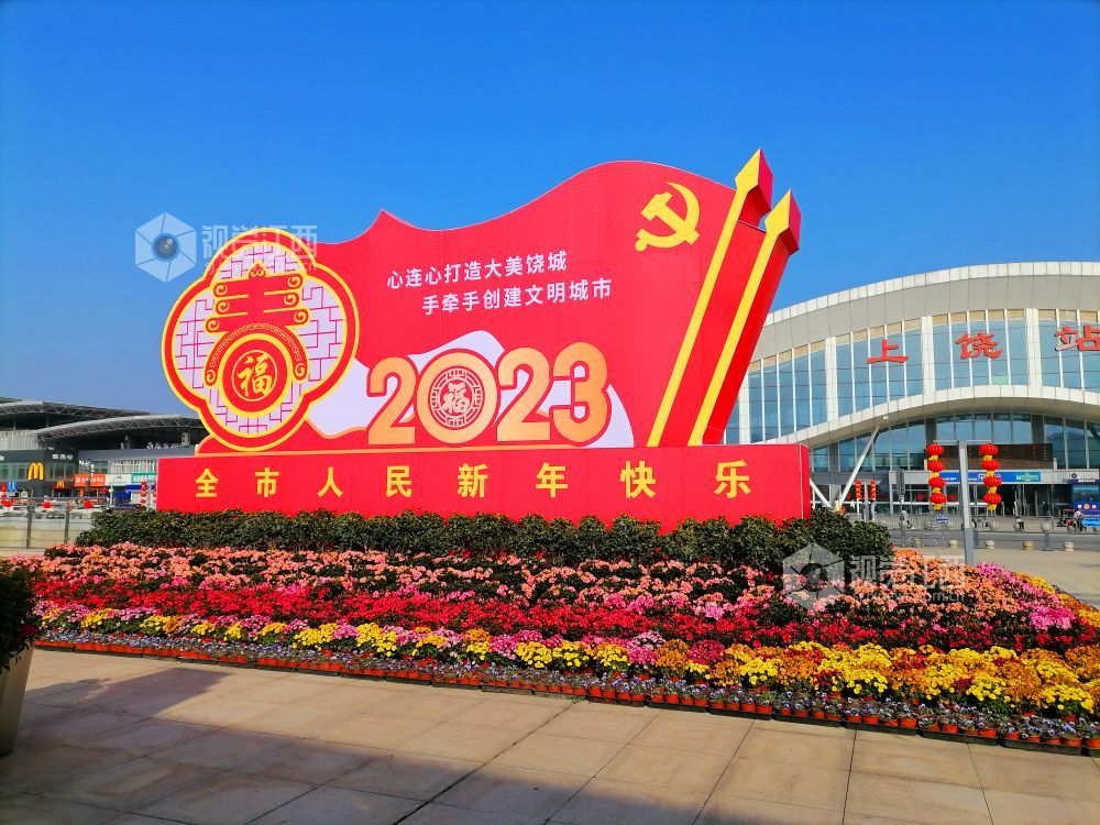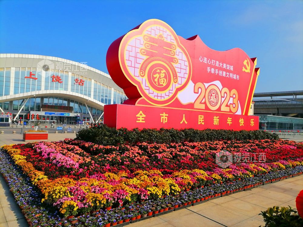 2023年兔年春节将至,江西省上饶市区各道路景点等地点进行精心规划,精心设计,精心装扮,处处花团锦簇、张灯结彩,营造出喜庆祥和的浓浓节日氛围。