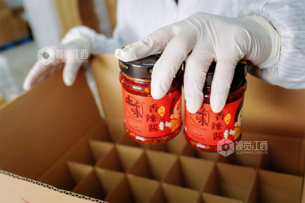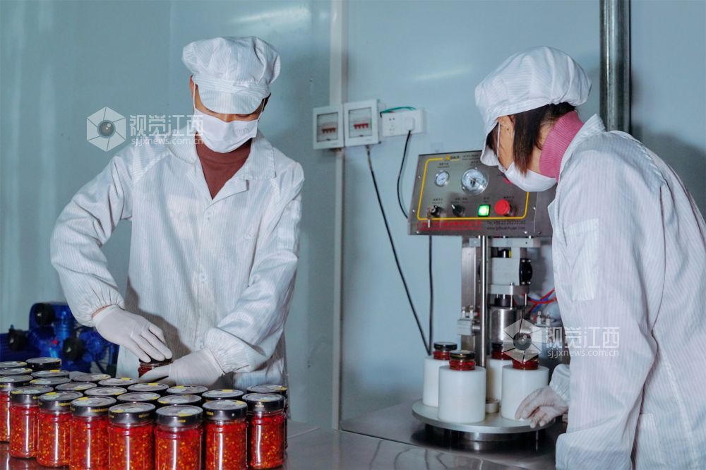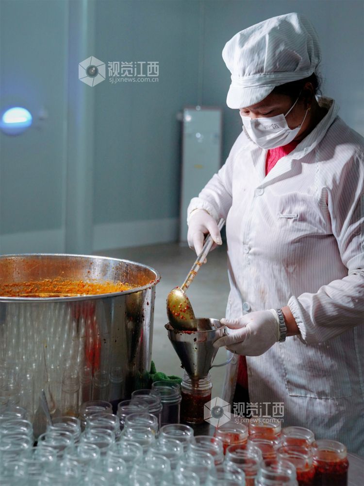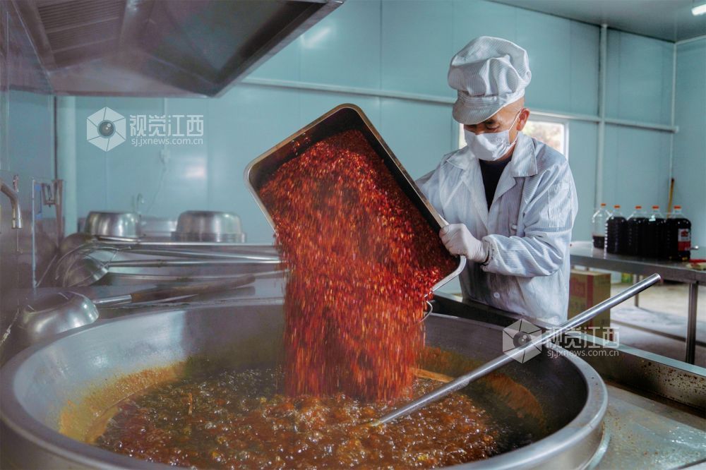 2023年1月13日,在江西省新余市分宜县高岚乡盆溪食品加工厂,员工正忙着制作香辣酱,满足春节各地市场供应需求。在推进乡村振兴工作中,高岚乡盆溪村通过“食品加工厂+致富带头人+合作社+农户”的自主生产加工模式,形成集“研发、收购、加工、储藏、销售、出口”为一体的农业产业化企业,常年聘请3名脱贫户在厂务工增收,产品畅销本地,还通过网络销往全国各地,成为高岚乡增收致富的好门路。