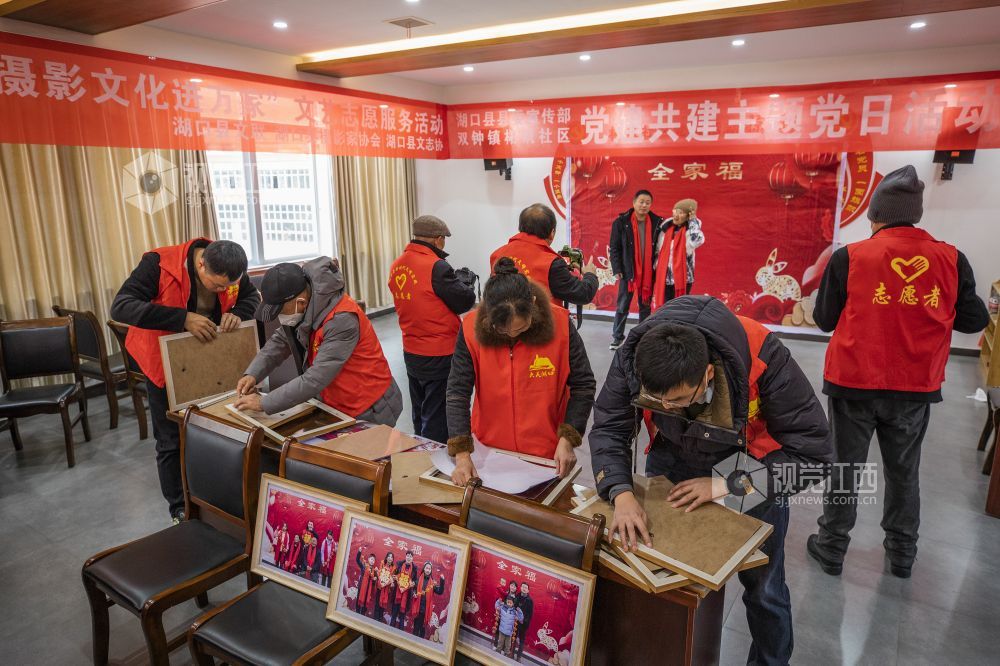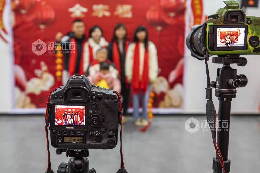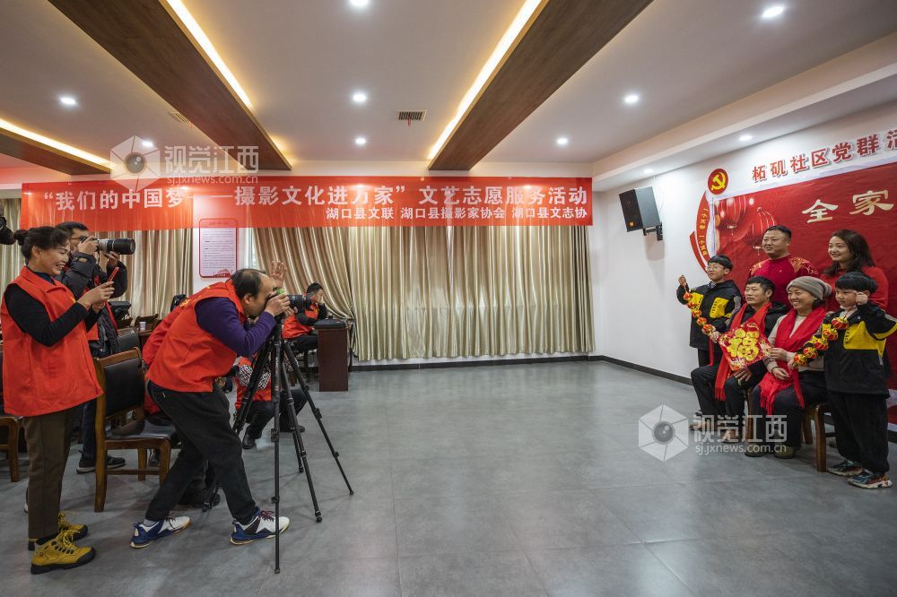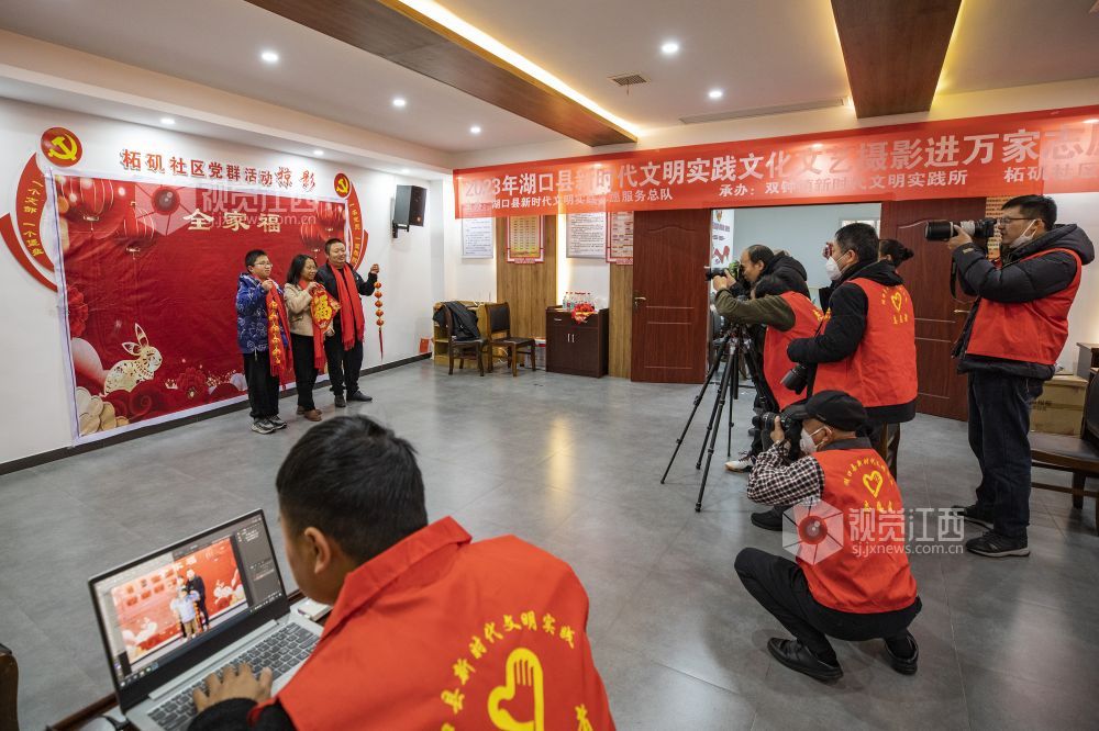 1月14日,江西省九江市湖口县组织文艺志愿者在双钟镇柘矶社区新时代文明实践站为居民免费拍摄“全家福”,喜迎新年。