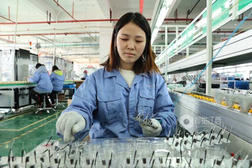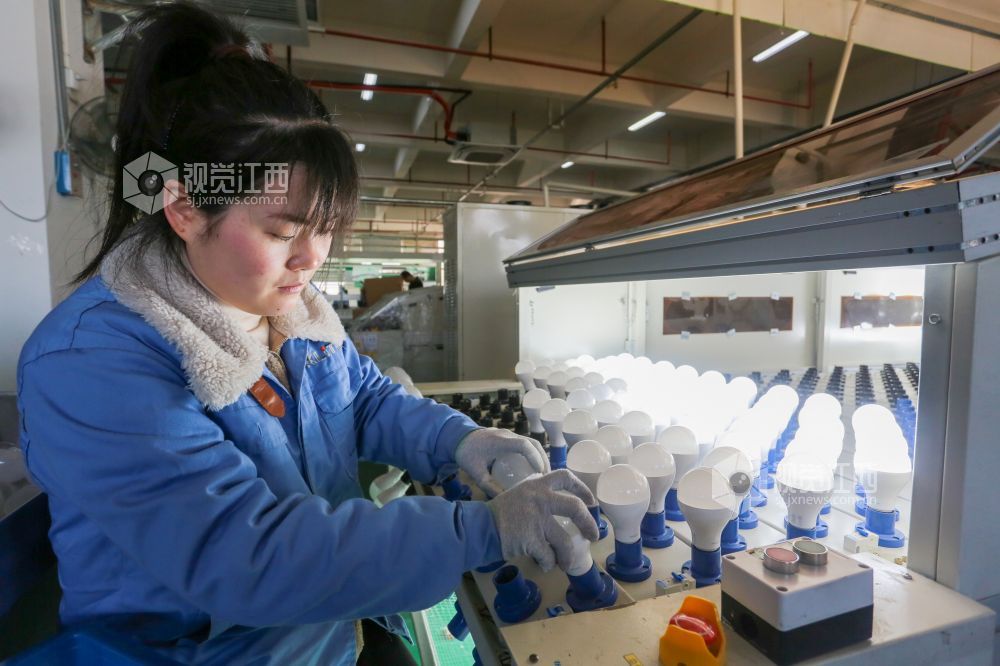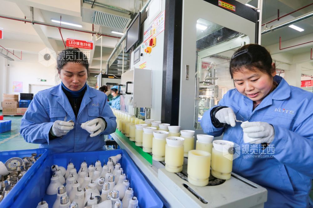 2023年1月19日,江西省瑞昌市智造小镇凯耀照明生产车间内,工人们正在抓紧生产智能LED光源和灯具。